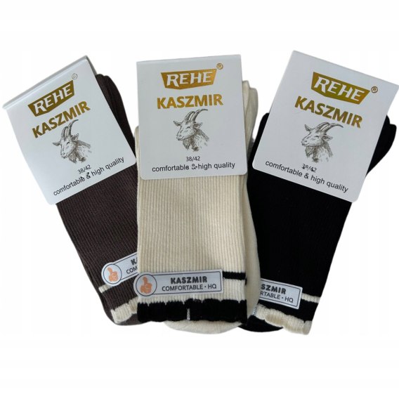 3 pary skarpet skarpetek kaszmirowych falbanka prążkowane Rehe 35-39