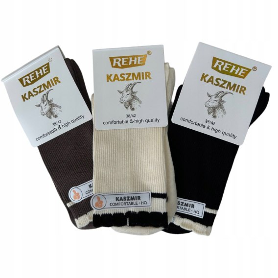3 pary skarpet skarpetek kaszmirowych falbanka prążkowane Rehe 38-42