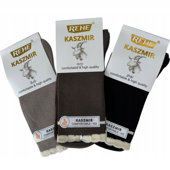 3 pary skarpet skarpetek kaszmirowych falbanka prążkowane Rehe 38-42
