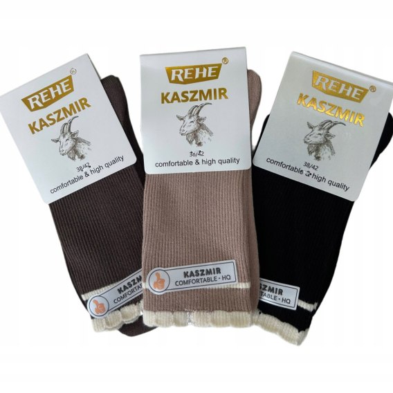 3 pary skarpet skarpetek kaszmirowych falbanka prążkowane Rehe 38-42