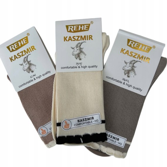 3 pary skarpet skarpetek kaszmirowych falbanka prążkowane Rehe 38-42