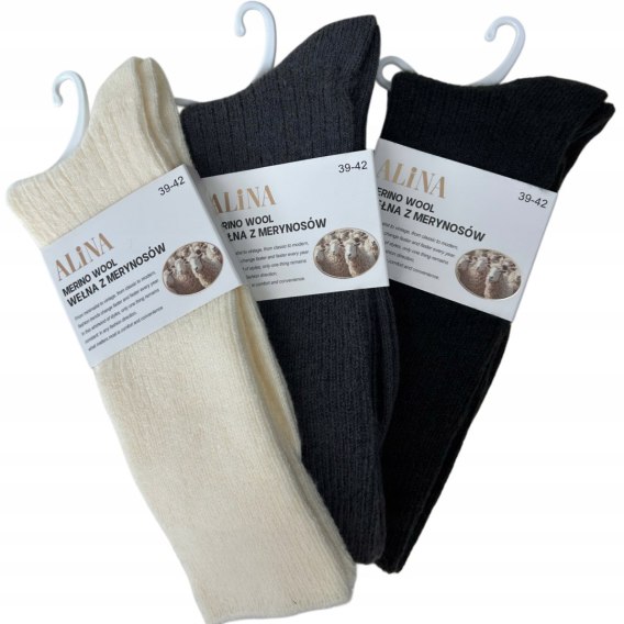 3 pary skarpet wełnianych wełna merino z merynosów prążek Alina 39-42