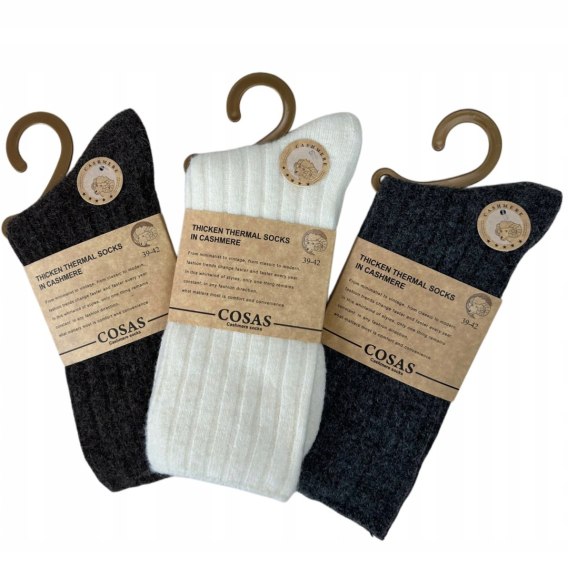 3pak skarpet skarpetek wełnianych kaszmirowych prążkowane Cosas 39-42