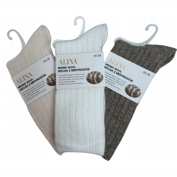 3pak skarpety skarpetki wełniane wełna z merynosów prążek Alina 35-38