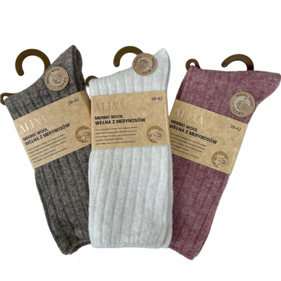3pak skarpety skarpetki wełniane wełna z merynosów prążek Alina 39-42