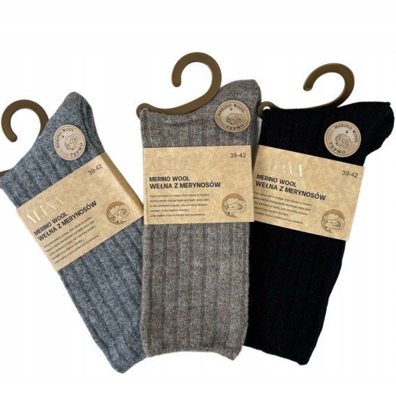 3pak skarpety skarpetki wełniane wełna z merynosów prążek Alina 39-42