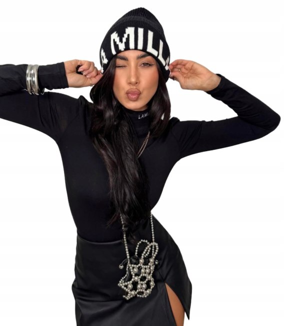 Czarna czapka zimowa wiskoza wełna wełniana wiskozowa z napisem La Milla- ICON