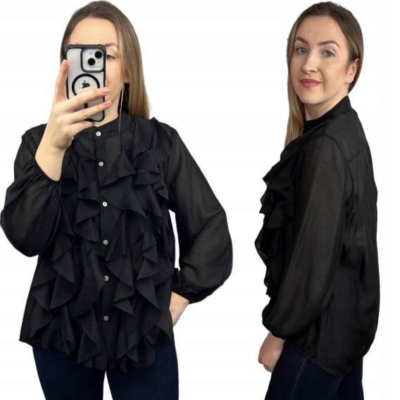 Koszula mgiełka czarna efektowne falbany ze stójką lyocell Zeta Otto- RUBINA