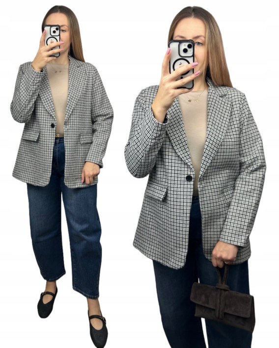 Marynarka sprawdzi się zarówno w zestawach casualowych – z jeansami i T-shirtem – jak i w bardziej eleganckich połączeniach, np. z cygaretkami i szpilkami.