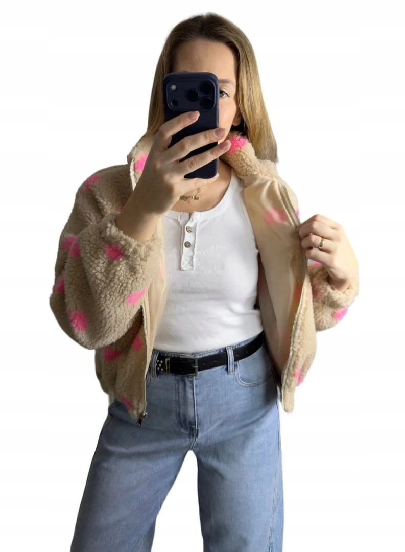 Miękka, ciepła bluza typu teddy (baranek) o fasonie bomberki, zapinana na suwak.