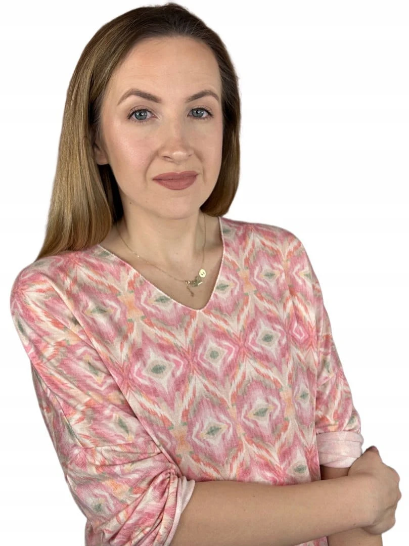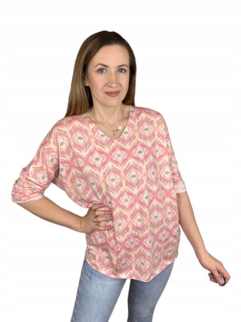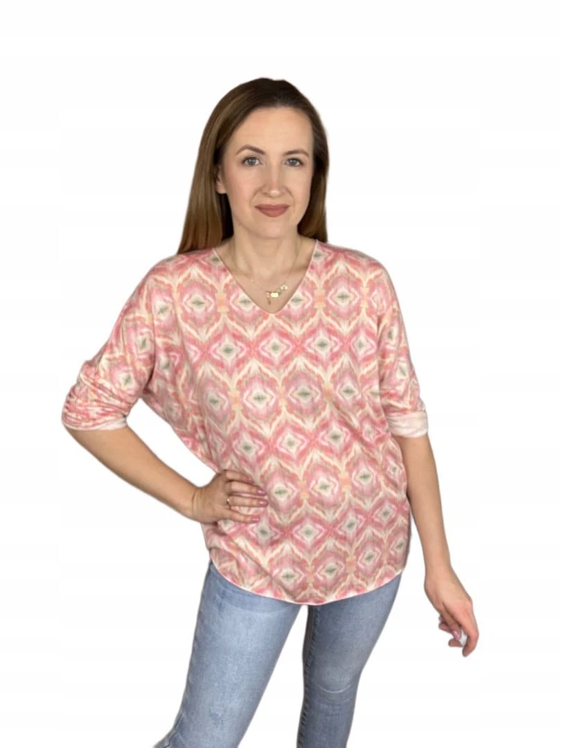 Bluzka dzianinowa dekolt V luźna rękawy wiosna wzorzysta uni bawełna