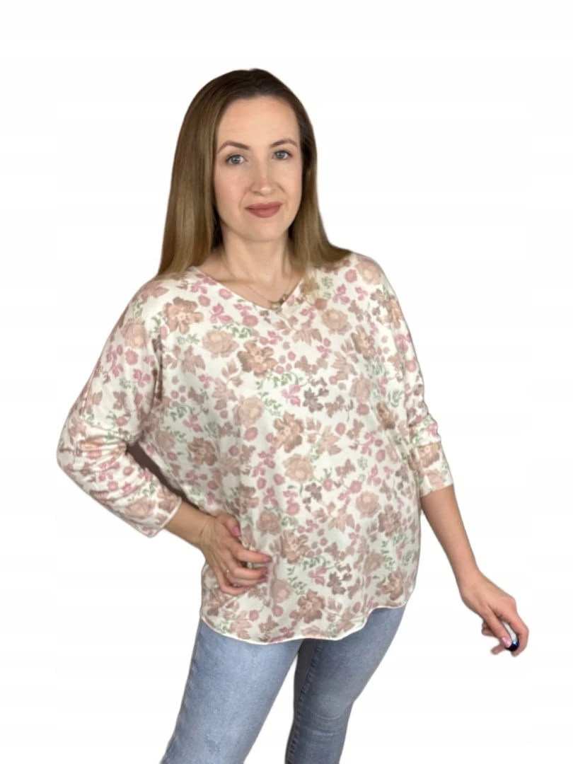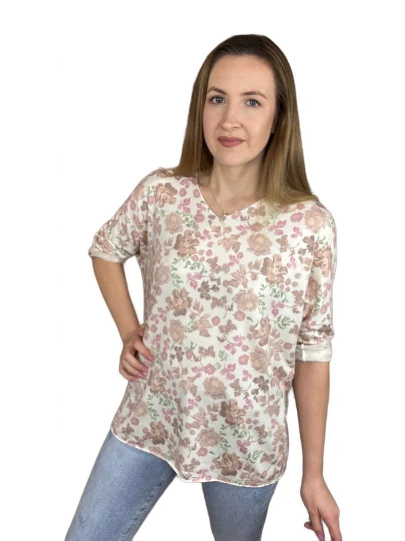 Bluzka dzianinowa dekolt V luźna rękawy wiosna wzorzysta uni bawełna