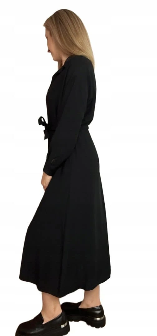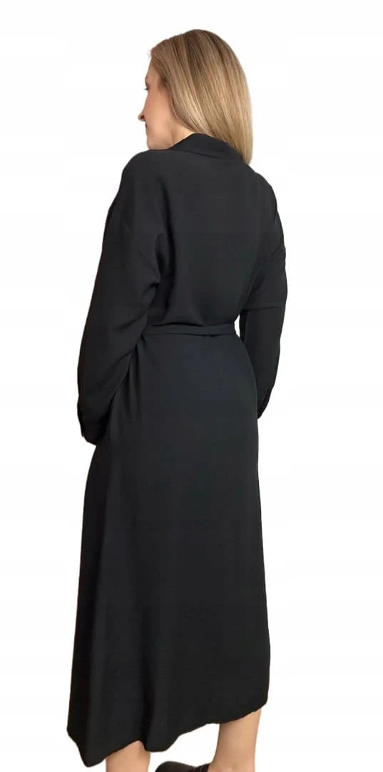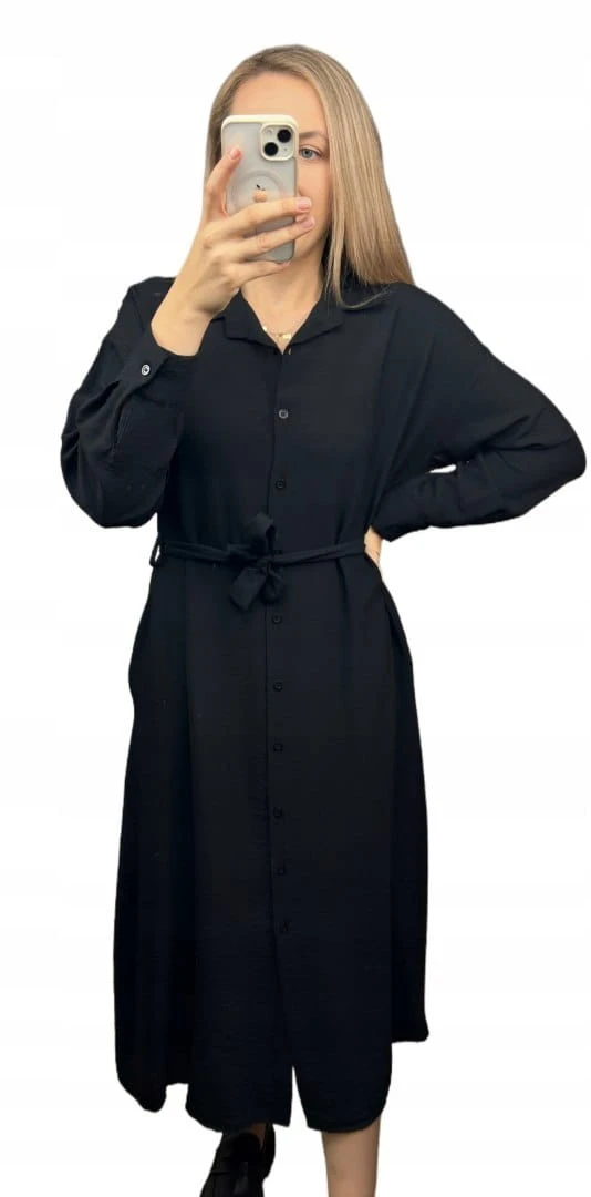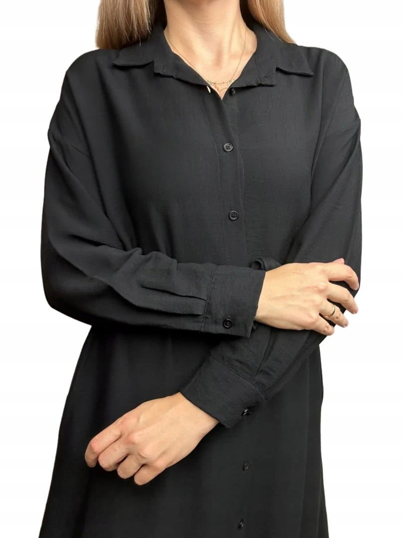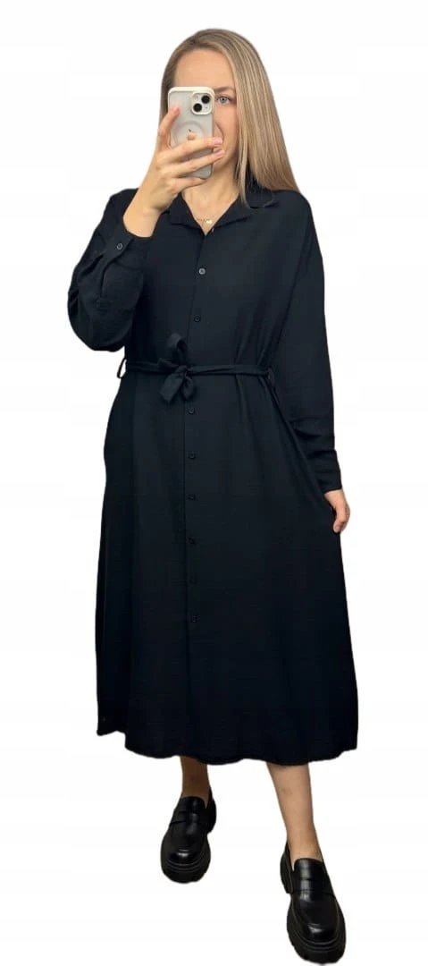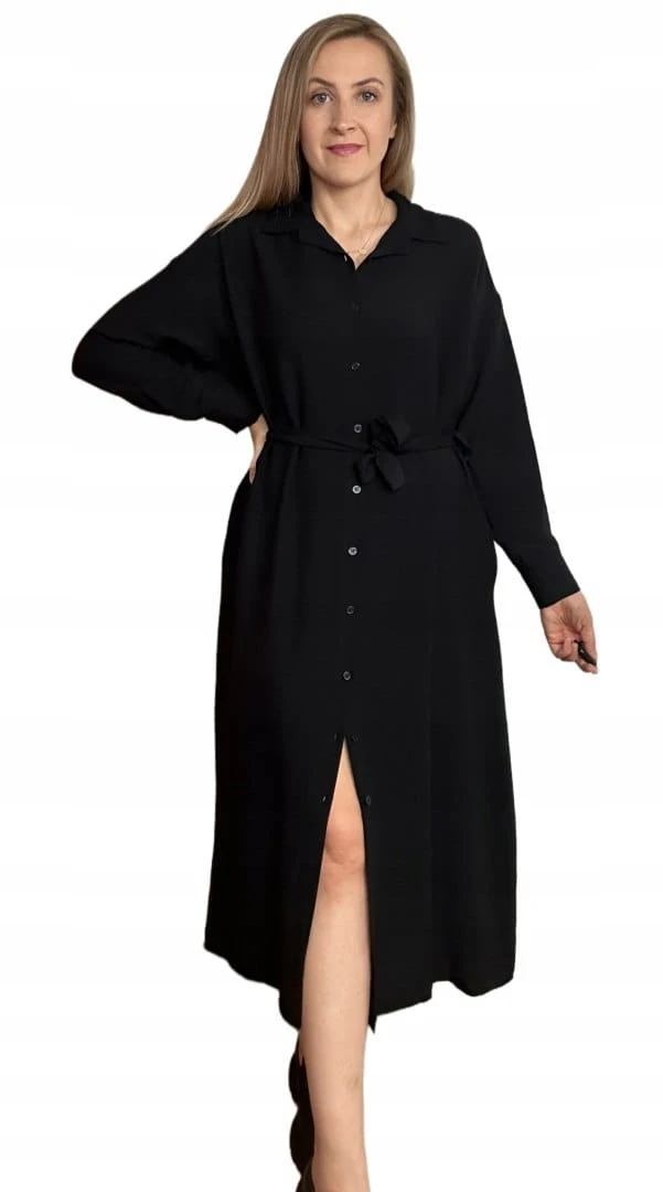 Długa sukienka szmizjerka koszulowa długi rękaw guziki luźna wiskoza M L XL