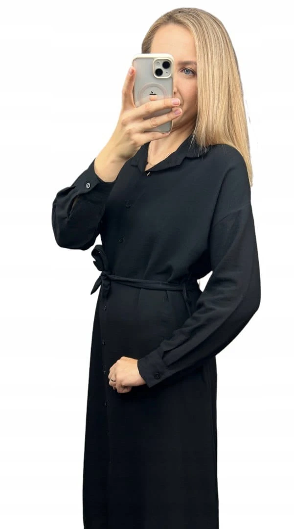 Świetna długa sukienka szmizjerka, która sprawdzi się idealnie jesienią.