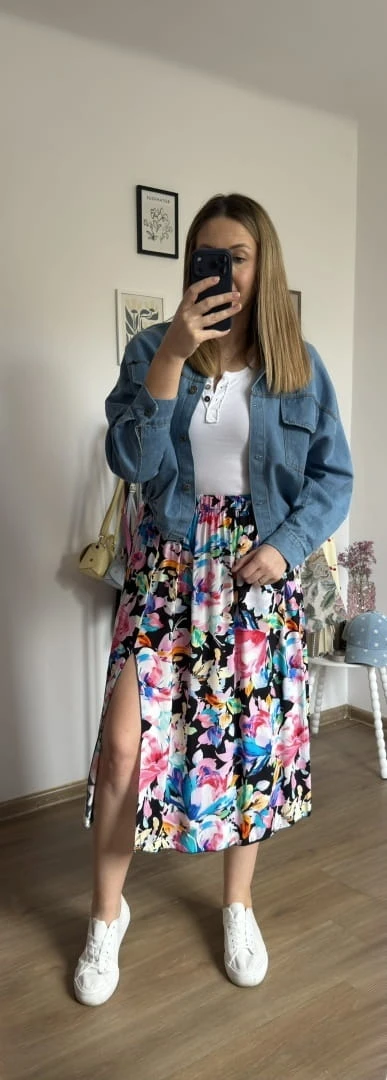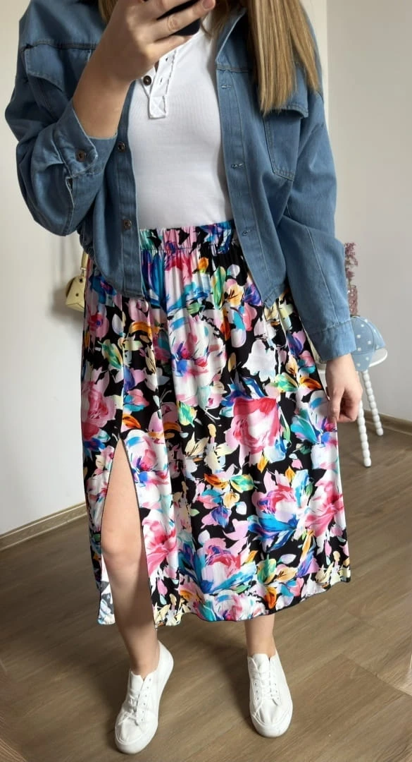 Dłuższa midi spódnica z rozcięciem wiskoza wiskozowa hit kwiatyAURELIA