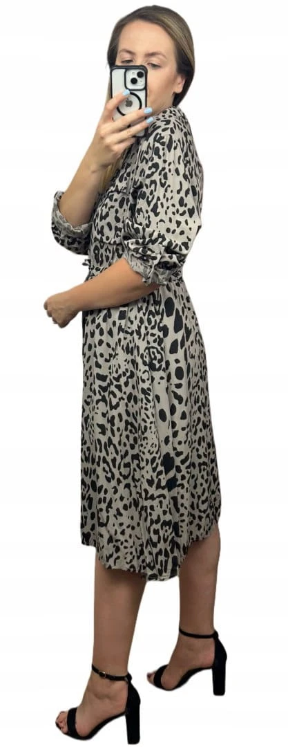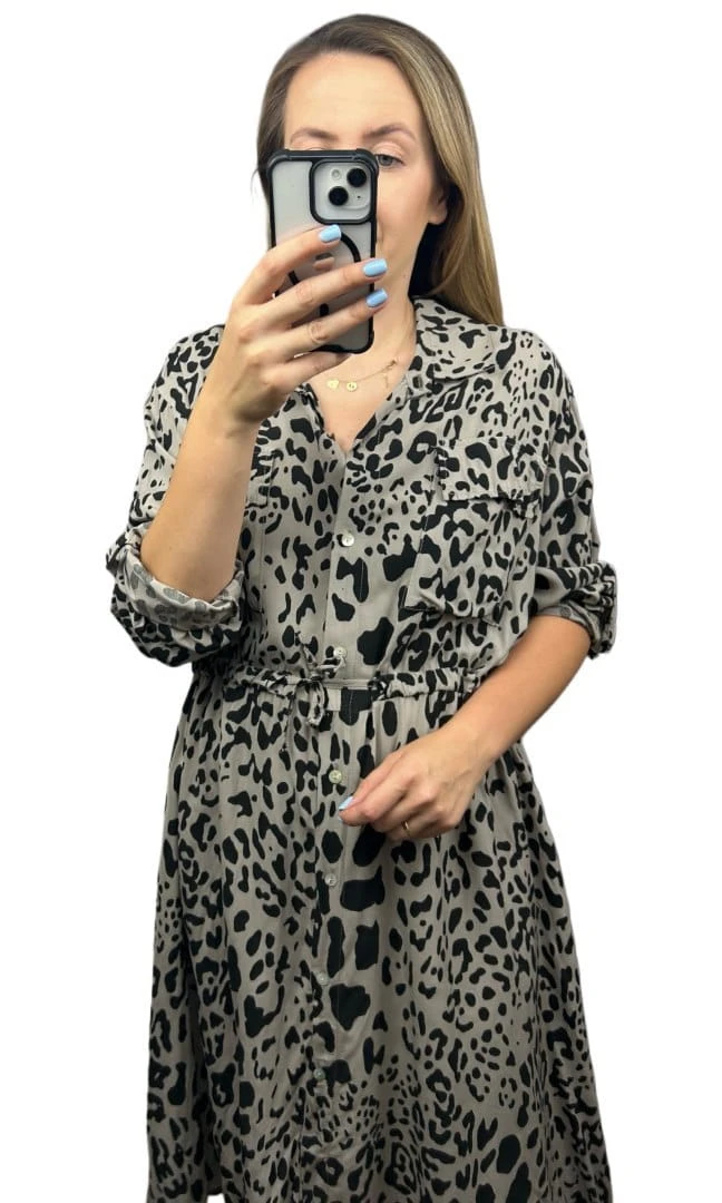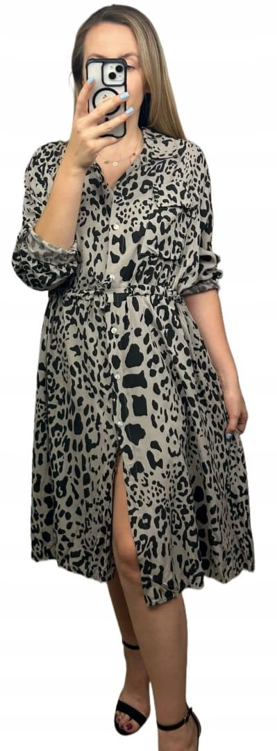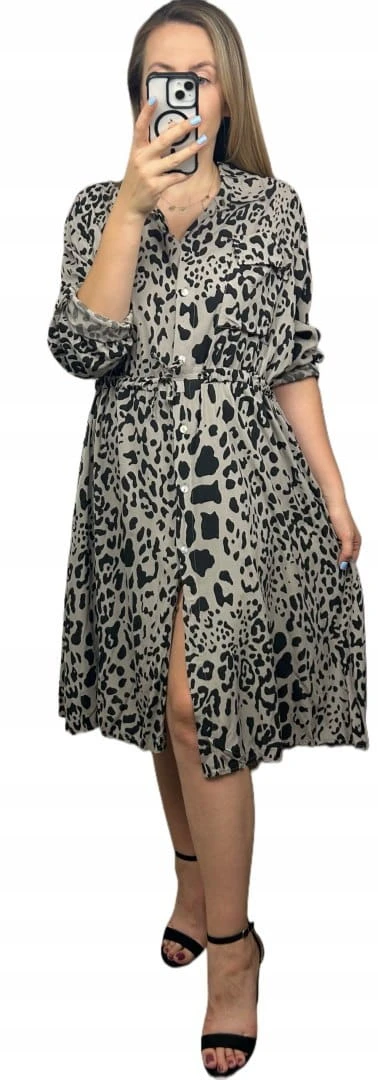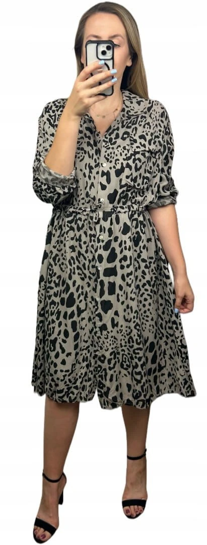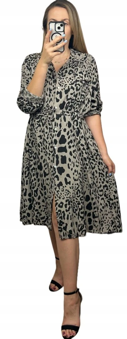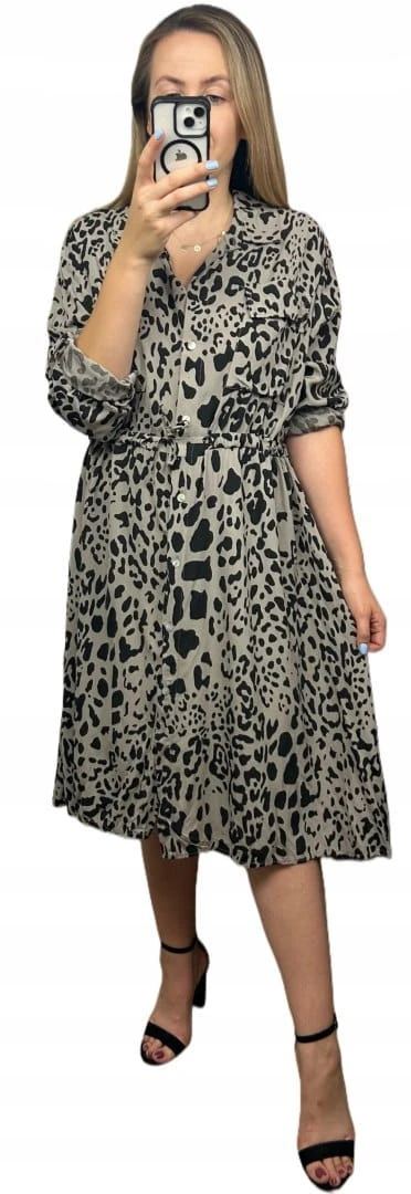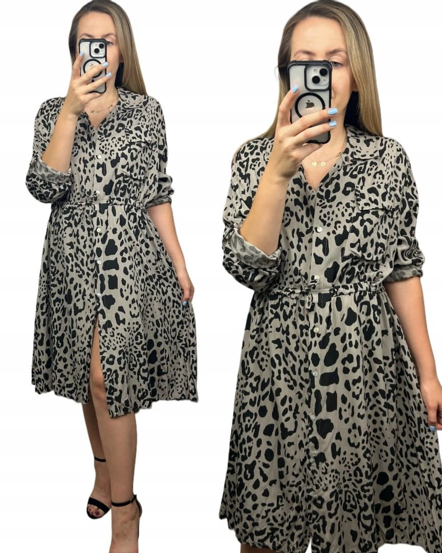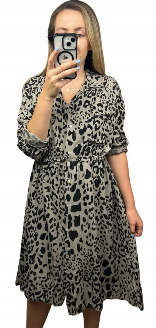 Sukienka szmizjerka w print zwierzęcy – 100% wiskoza