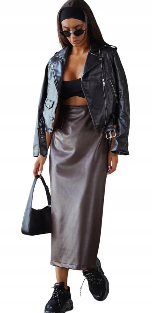 Dłuższa spódnica midi rozporek skóra ekologiczna ołówkowa Me Gusta M 38