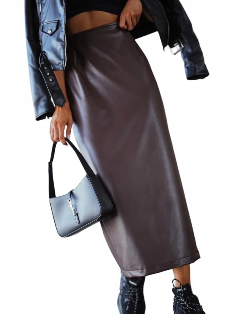 Spódnica ołówkowa z wysokim stanem, wykonana z miękkiej skóry ekologicznej o długości midi z rozcięciem z tyłu.