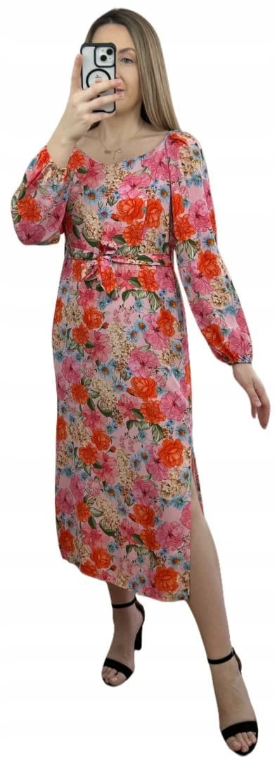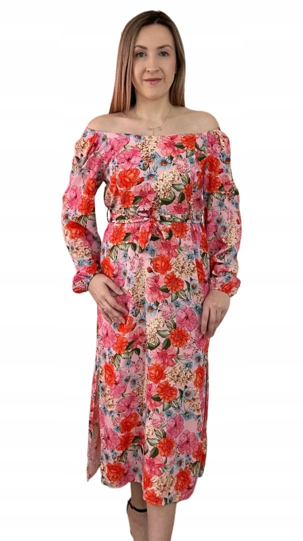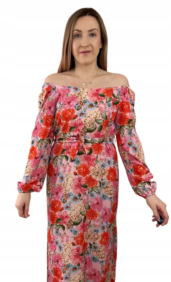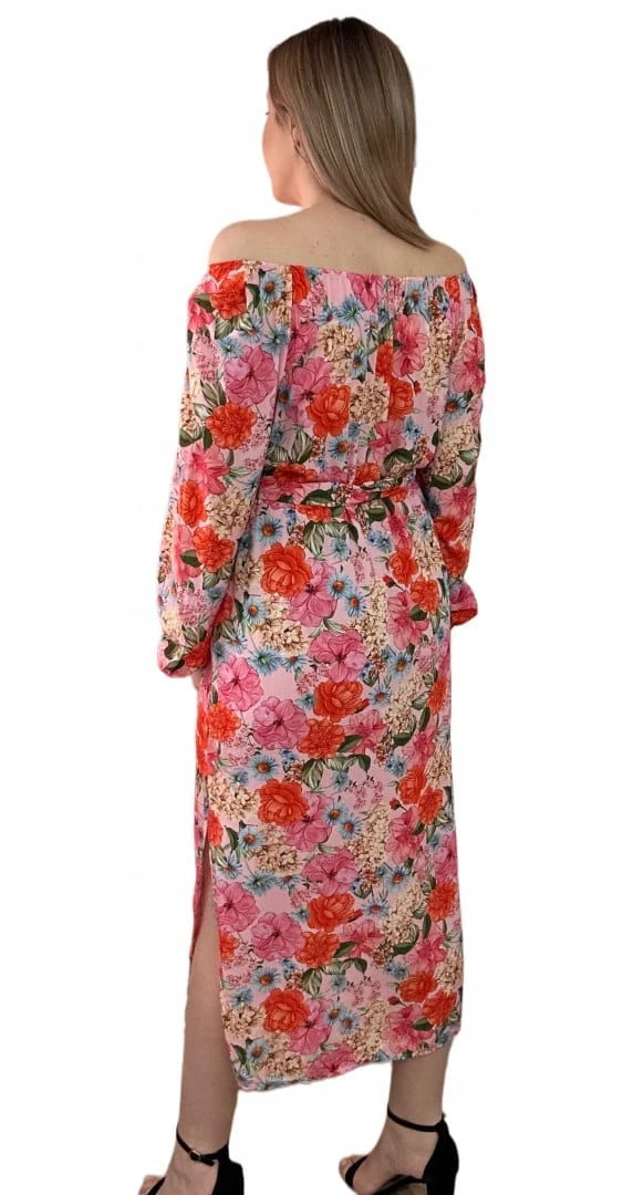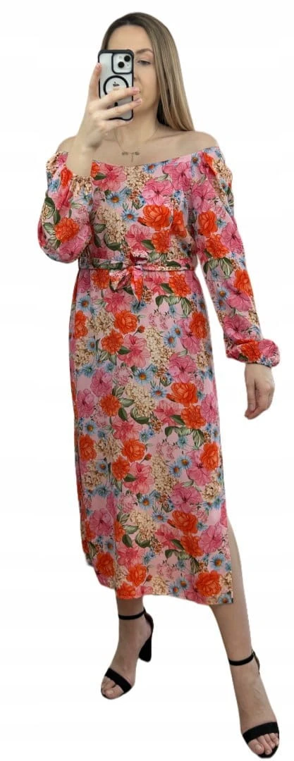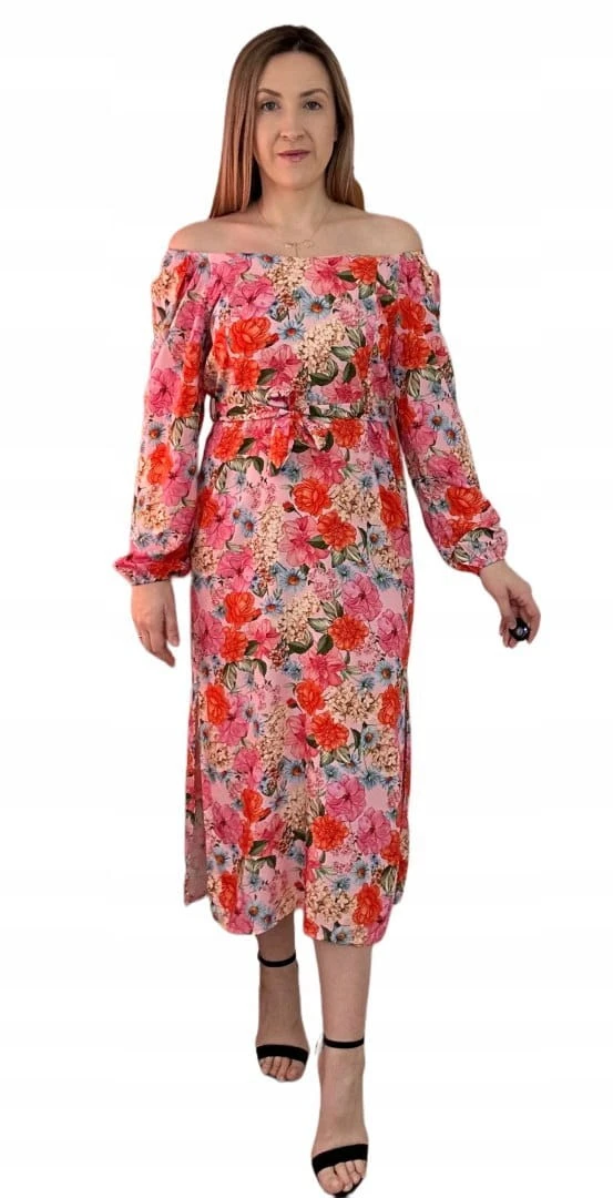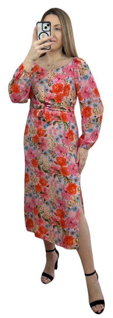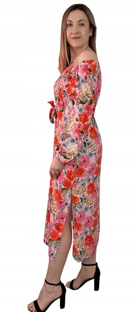 Dłuższa sukienka w kwiaty hiszpanka 100% wiskoza długie rękawy rozcięcia