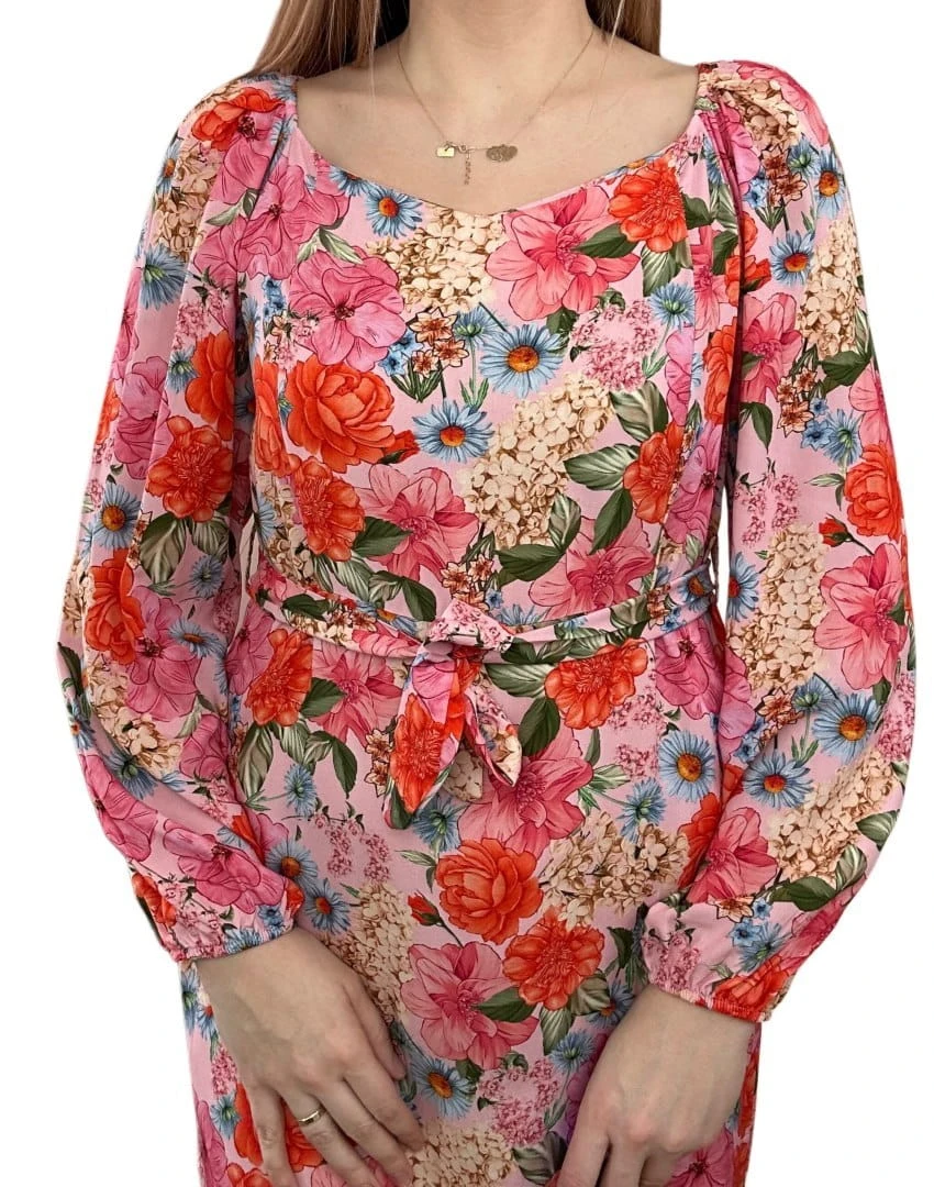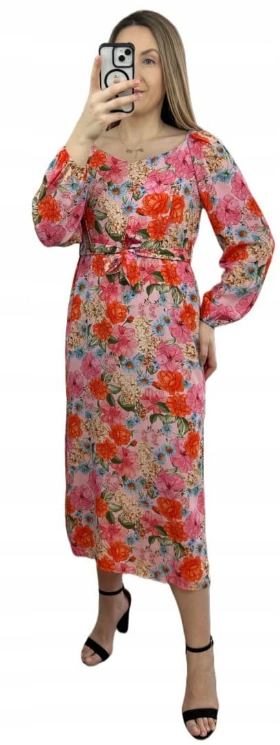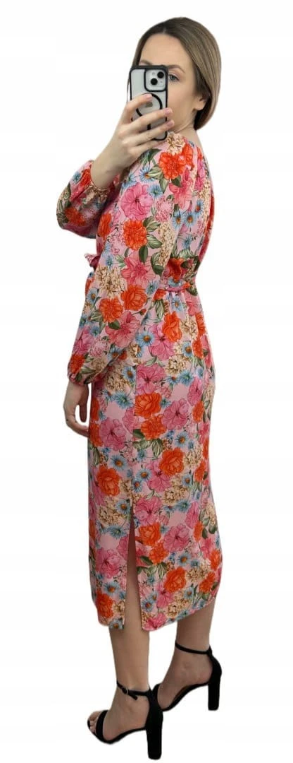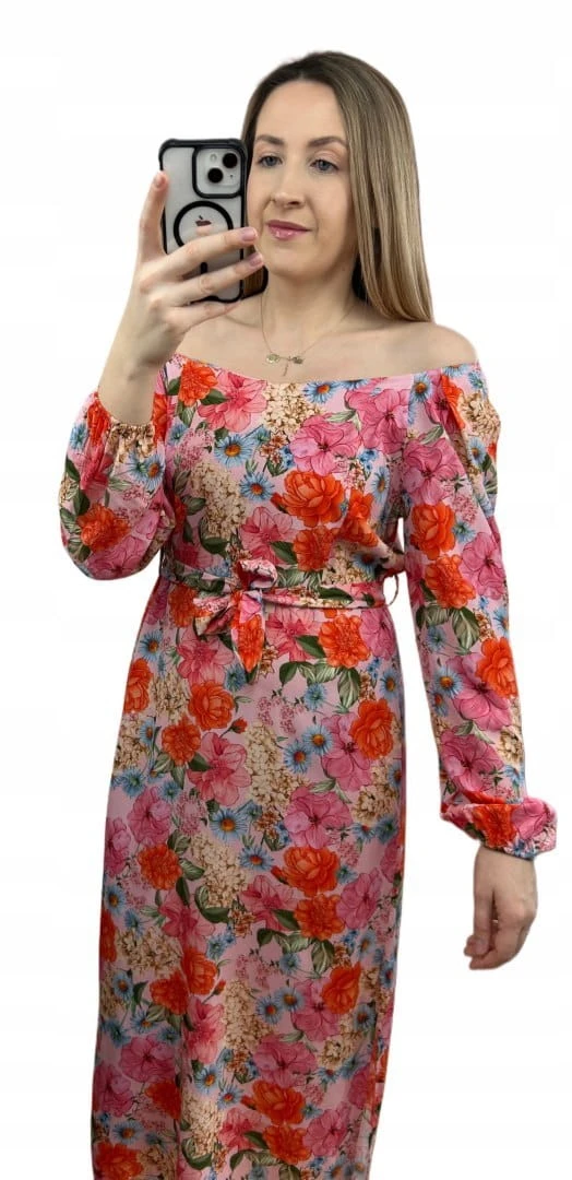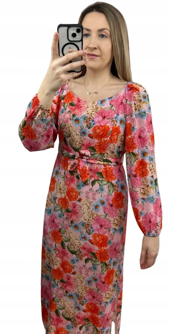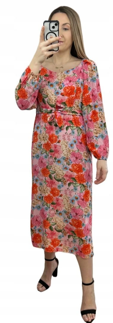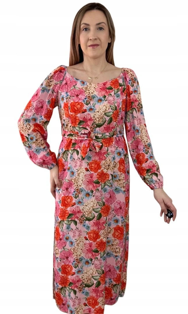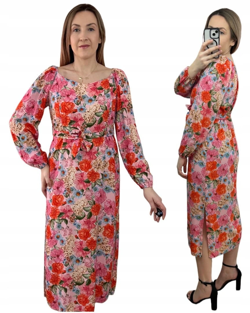 Dłuższa sukienka w kwiaty hiszpanka 100% wiskoza długie rękawy rozcięcia