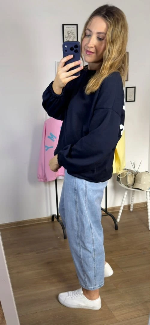 Granatowa bluza oversize luźna bawełniana Azara- MOMMY