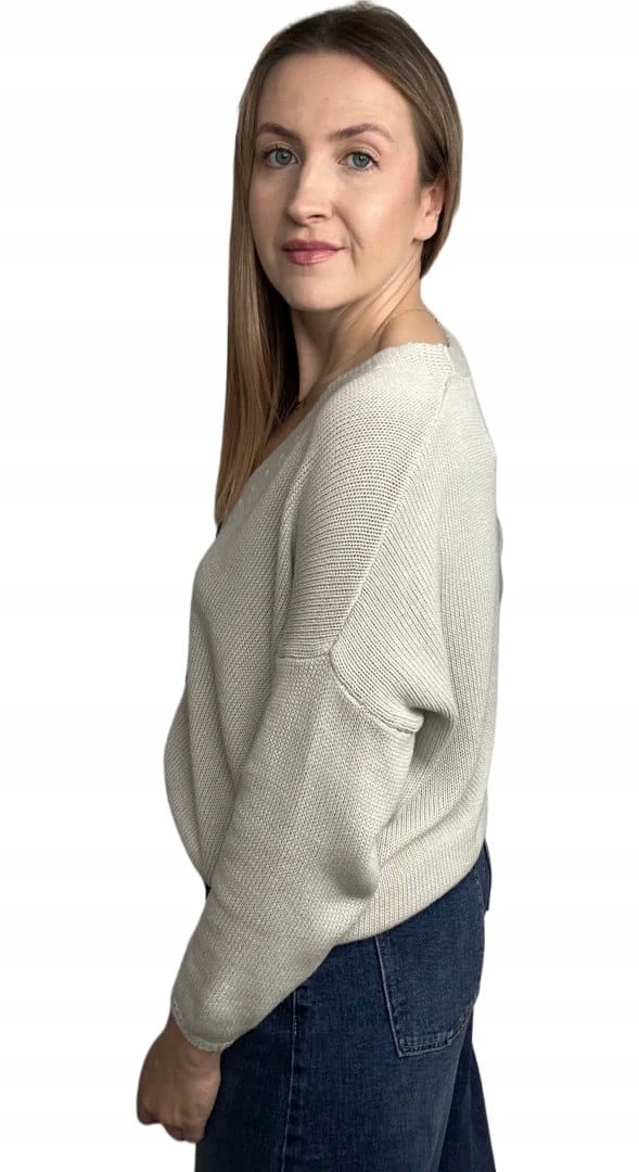 Kardigan sweter bawełniany guziki oversize luźny beżowy Made in Italy- PURE COTTON