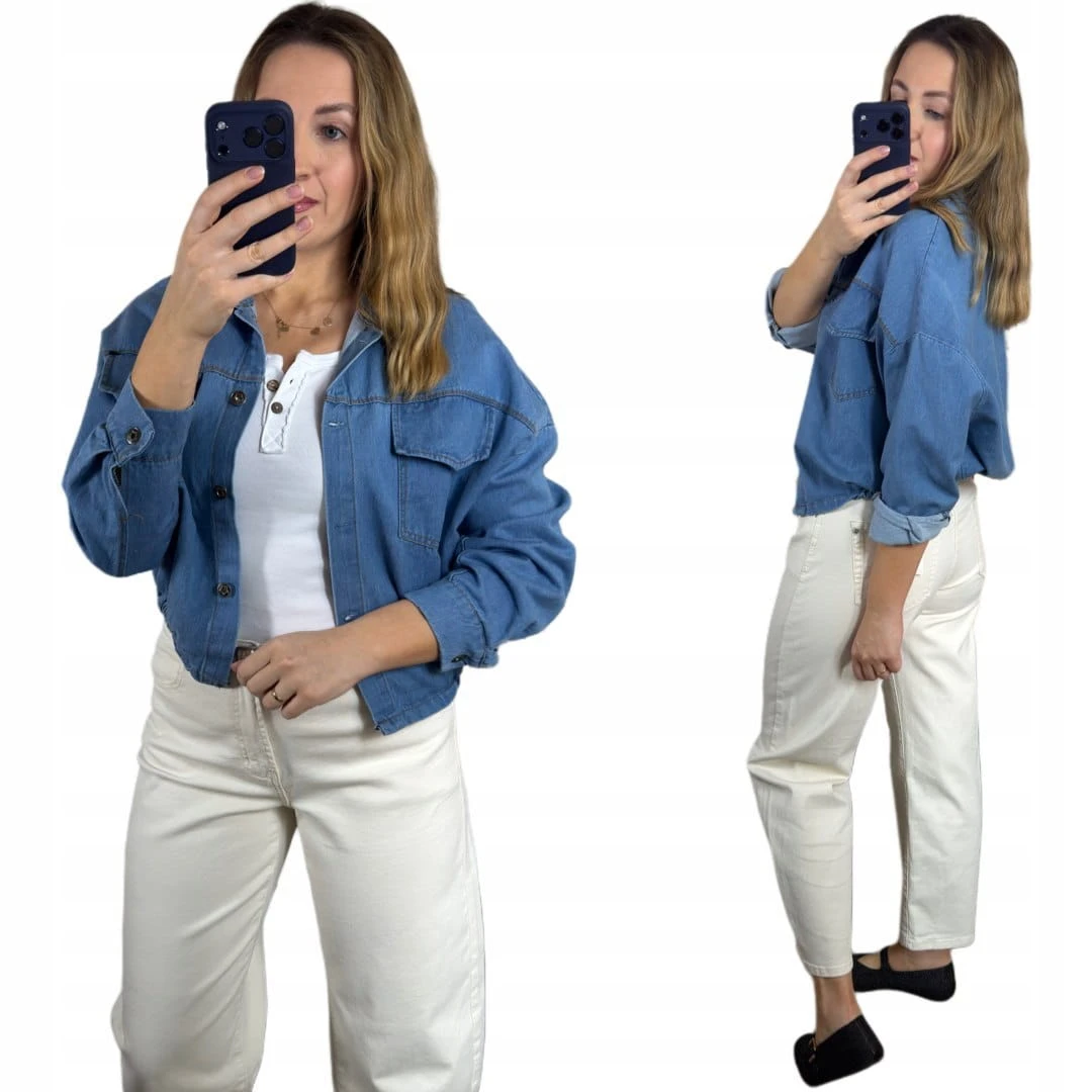 Model posiada dwie praktyczne kieszenie z klapką z przodu oraz zapięcie na ozdobne guziki. Idealna do codziennych stylizacji – świetnie wygląda zarówno z jeansami, jak i sukienką.