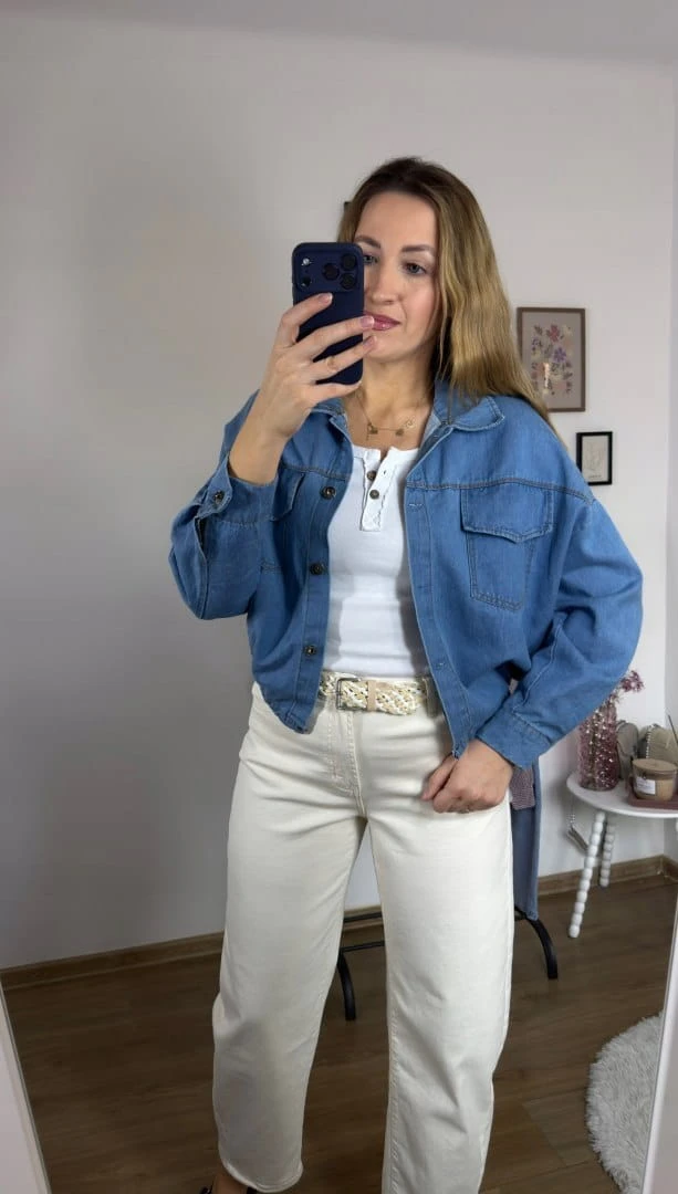 Stylowa i wygodna kurtka bomberka wykonana z miękkiego jeansu. Krótki, lekko oversize’owy krój nadaje jej nowoczesnego charakteru, a elastyczna gumka z tyłu na dole subtelnie podkreśla sylwetkę.