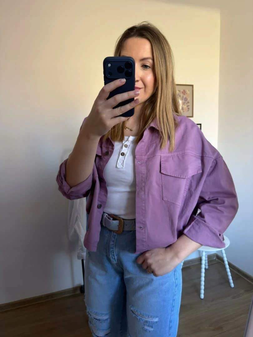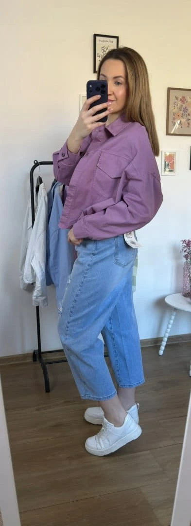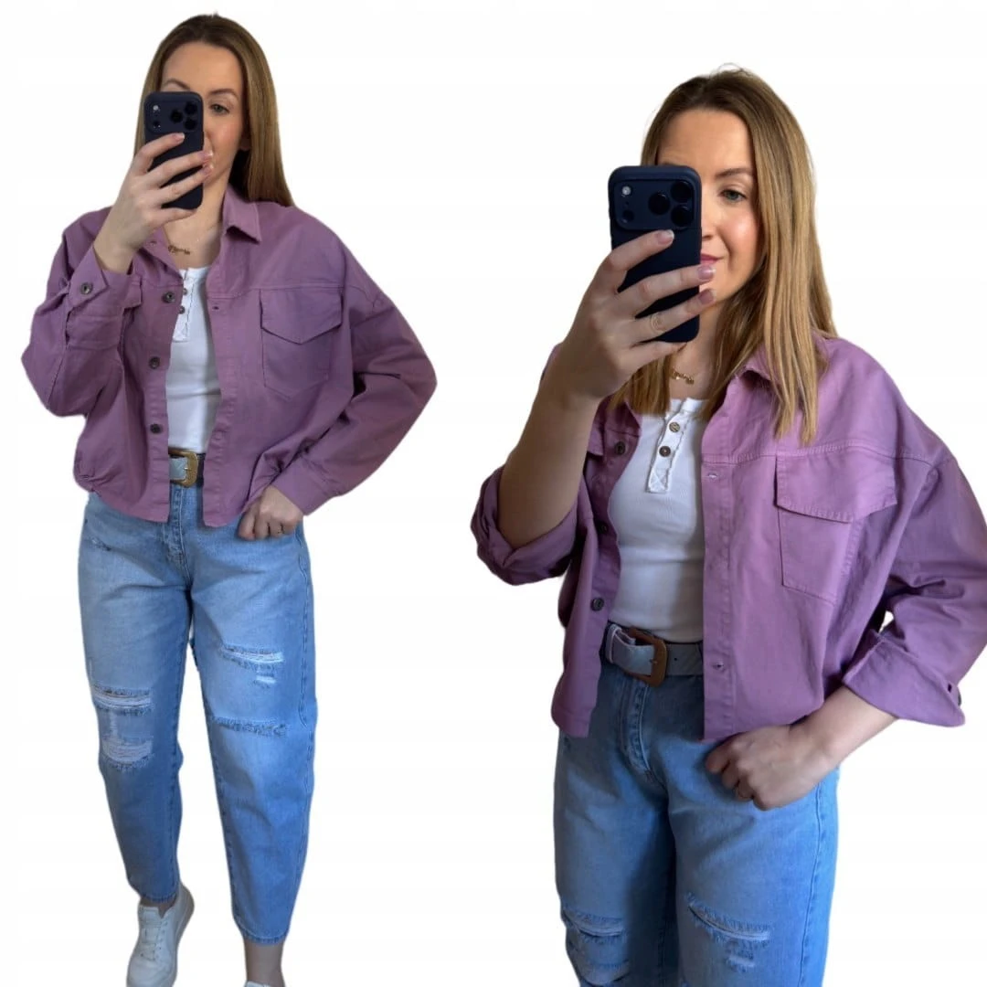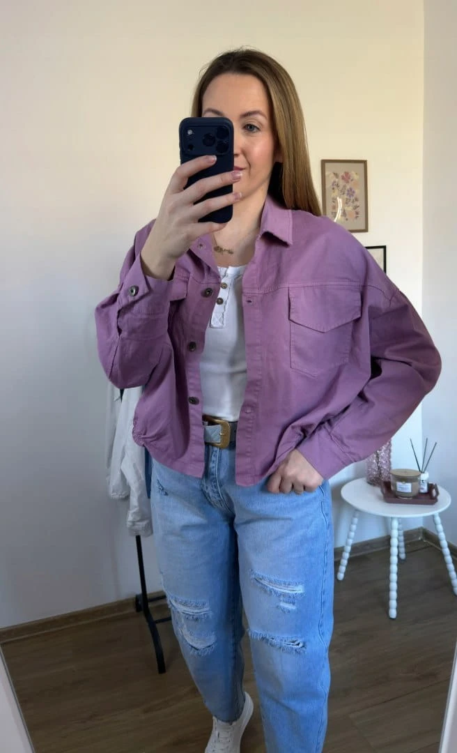 Katana bomberka oversize bawełniana luźna kieszenie jagodowa NEST- CITY