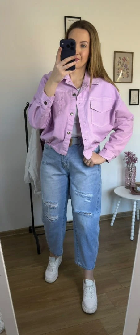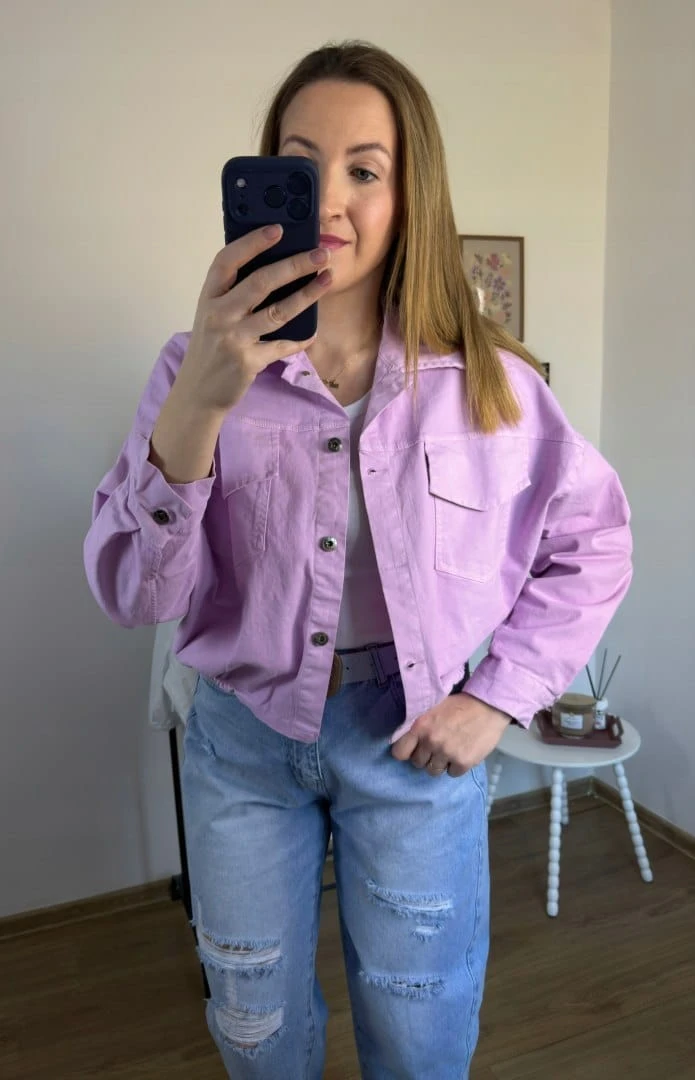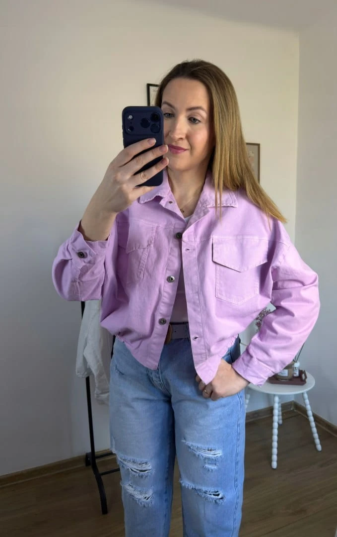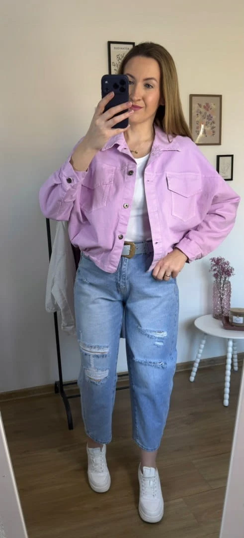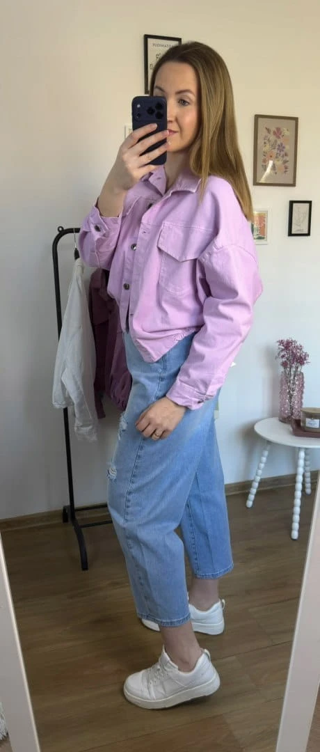 Katana bomberka oversize bawełniana luźna kieszenie różowa NEST- CITY