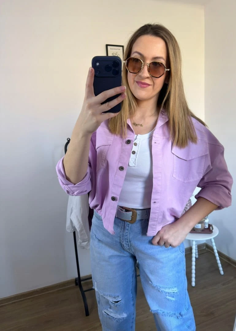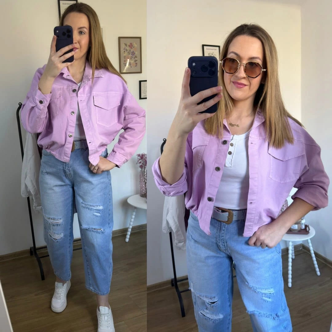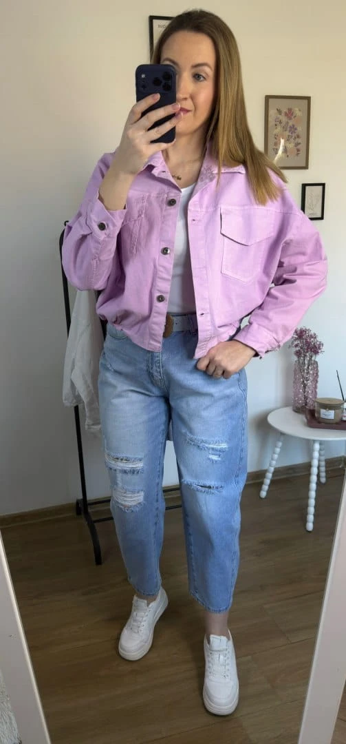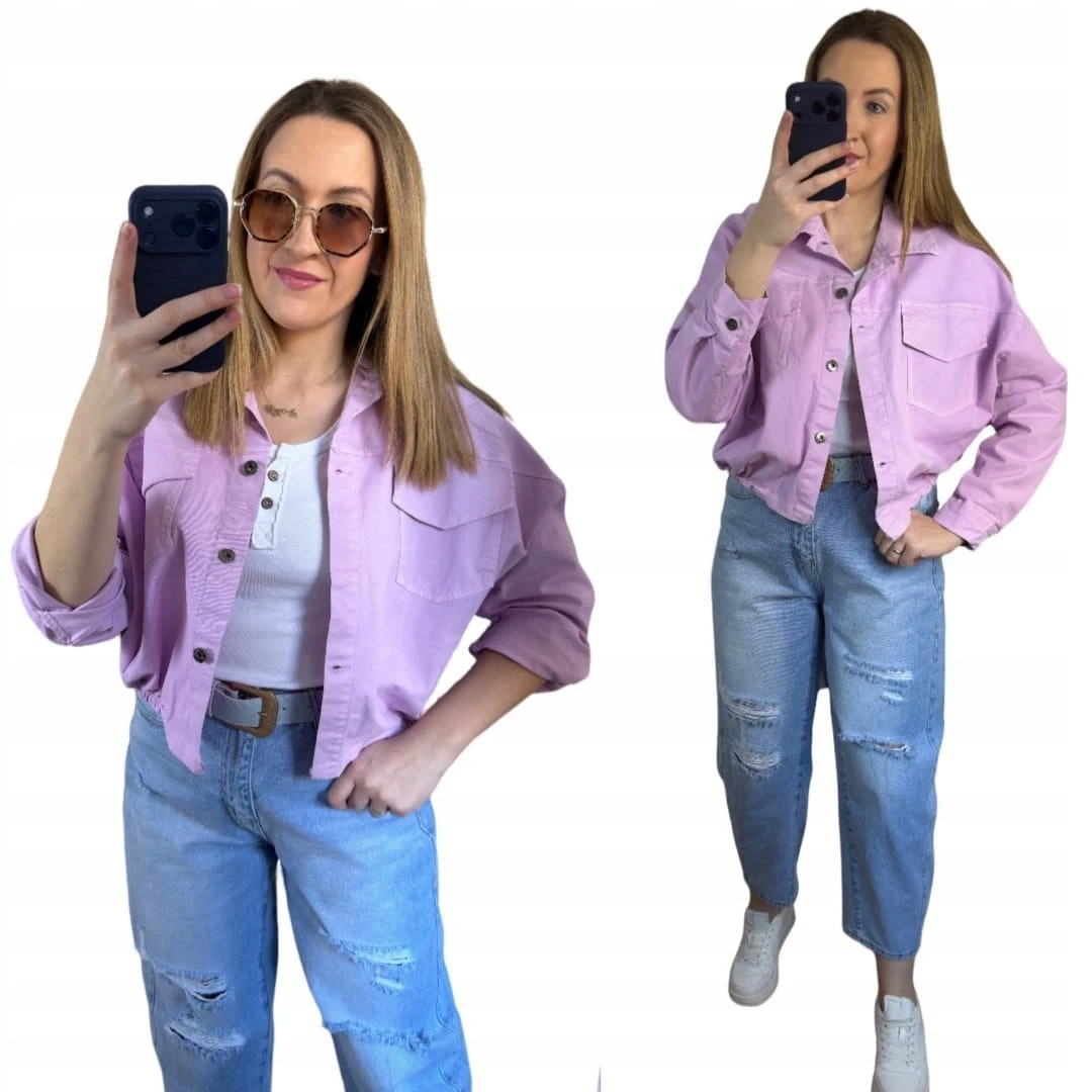 Katana bomberka oversize bawełniana luźna kieszenie różowa NEST- CITY