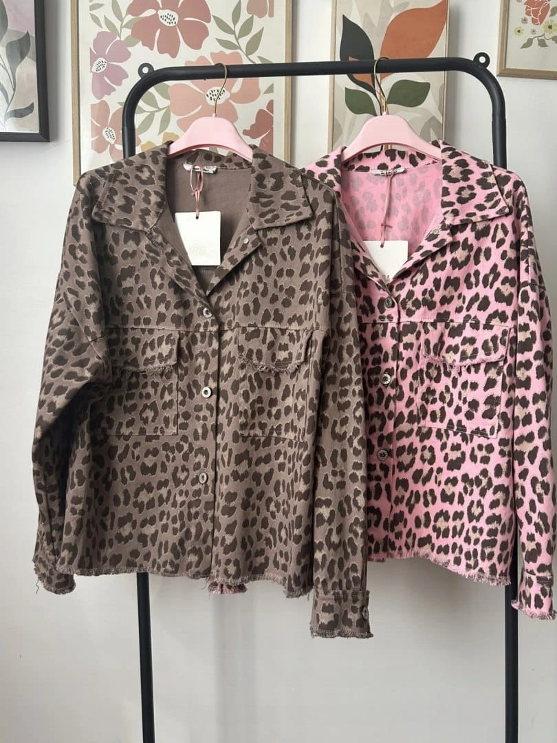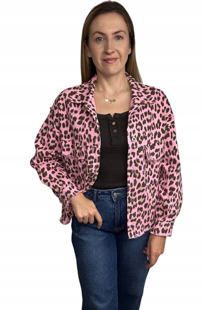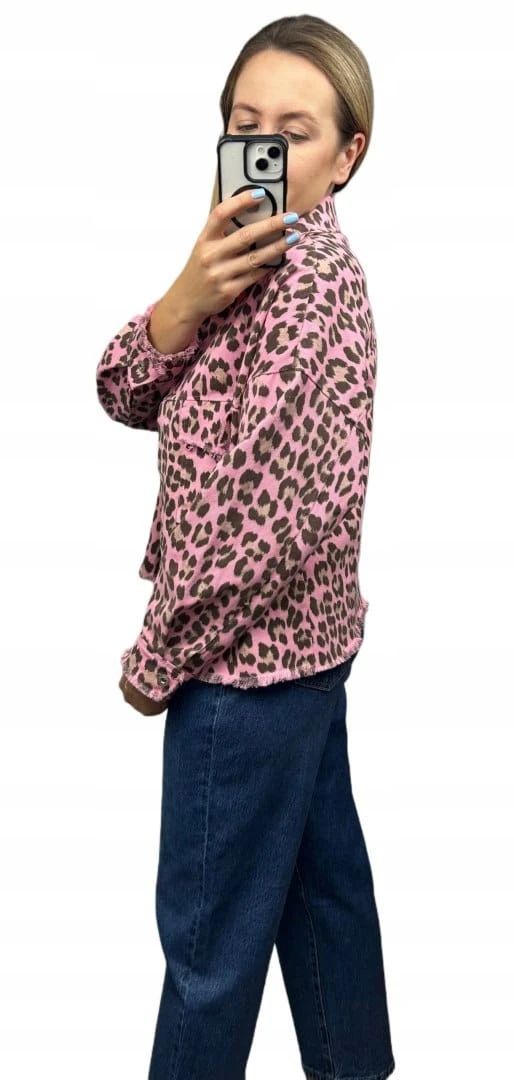 Katana jeansowa w panterkę cętki różowa brąz kieszenie bawełniana Azara - JUNGLE DENIM