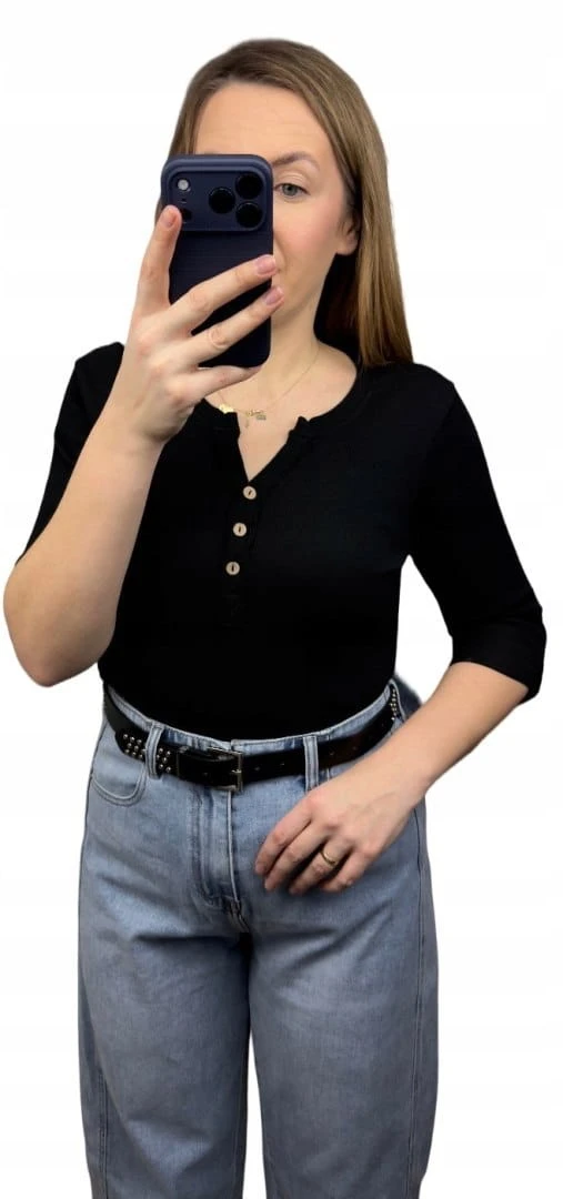Klasyczna czarna bluzka damska prążkowana guziki bawełna Michelle- BASIC RIB