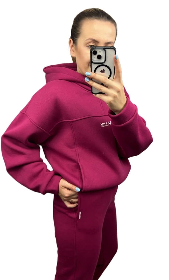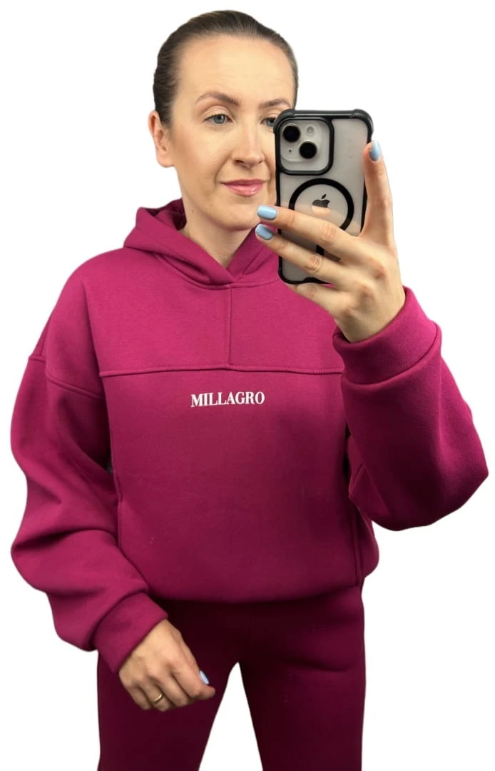 Komplet dresowy bawełna bluza oversize spodnie dresowe burak/bordo Millagro- BASIC SET