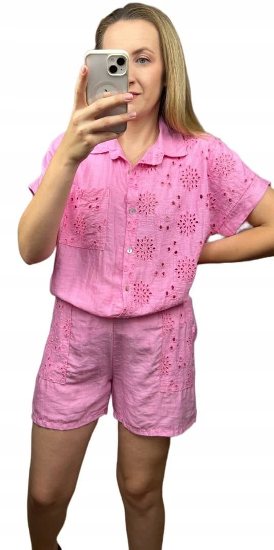 Komplet lniany wiskozowy koszula spodenki szorty oversize len wiskoza S M L