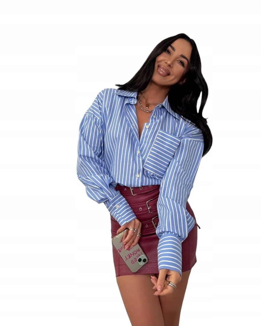 Klasyka w nowoczesnym wydaniu. Koszula w niebieskie paski LA MILLA to idealna baza do stylizacji casualowych i eleganckich. Ma luźny, oversize’owy krój oraz praktyczną kieszeń, dzięki czemu wygląda świetnie zarówno wpuszczona w spódnicę/spodnie, jak i noszona swobodnie.