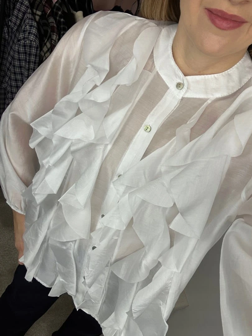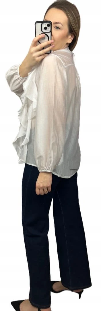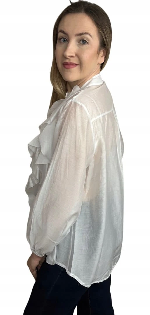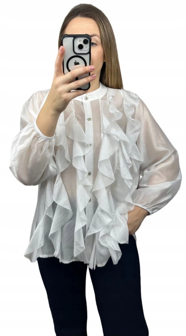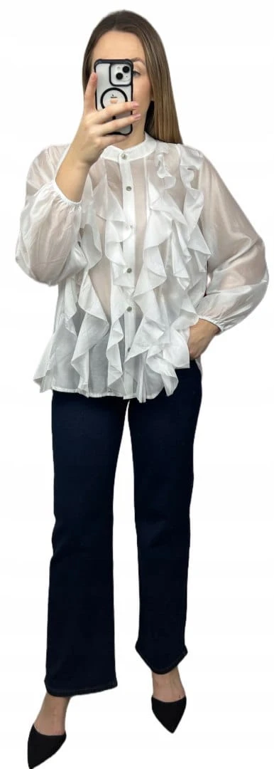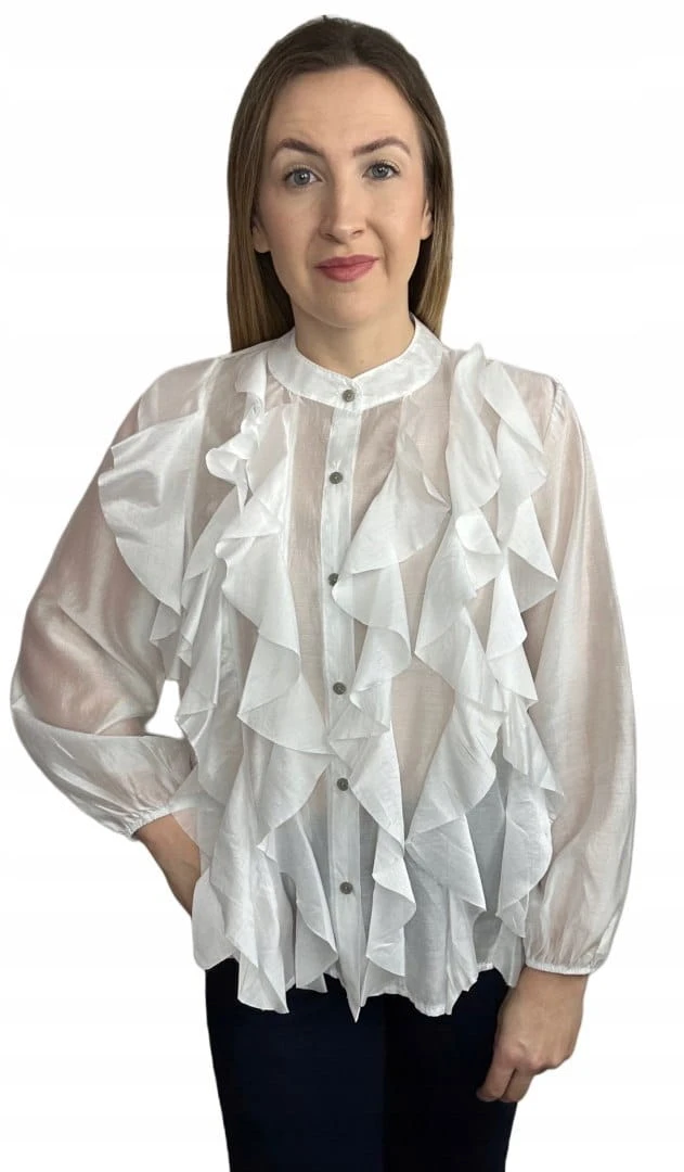 Wyjątkowa koszula FALBANA Zeta Otto, wykonana z lekkiej, półtransparentnej tkaniny o pięknym, kobiecym charakterze. Efektowne falbany umieszczone z przodu układają się miękko i dodają sylwetce lekkości oraz elegancji.
