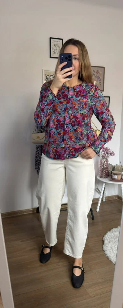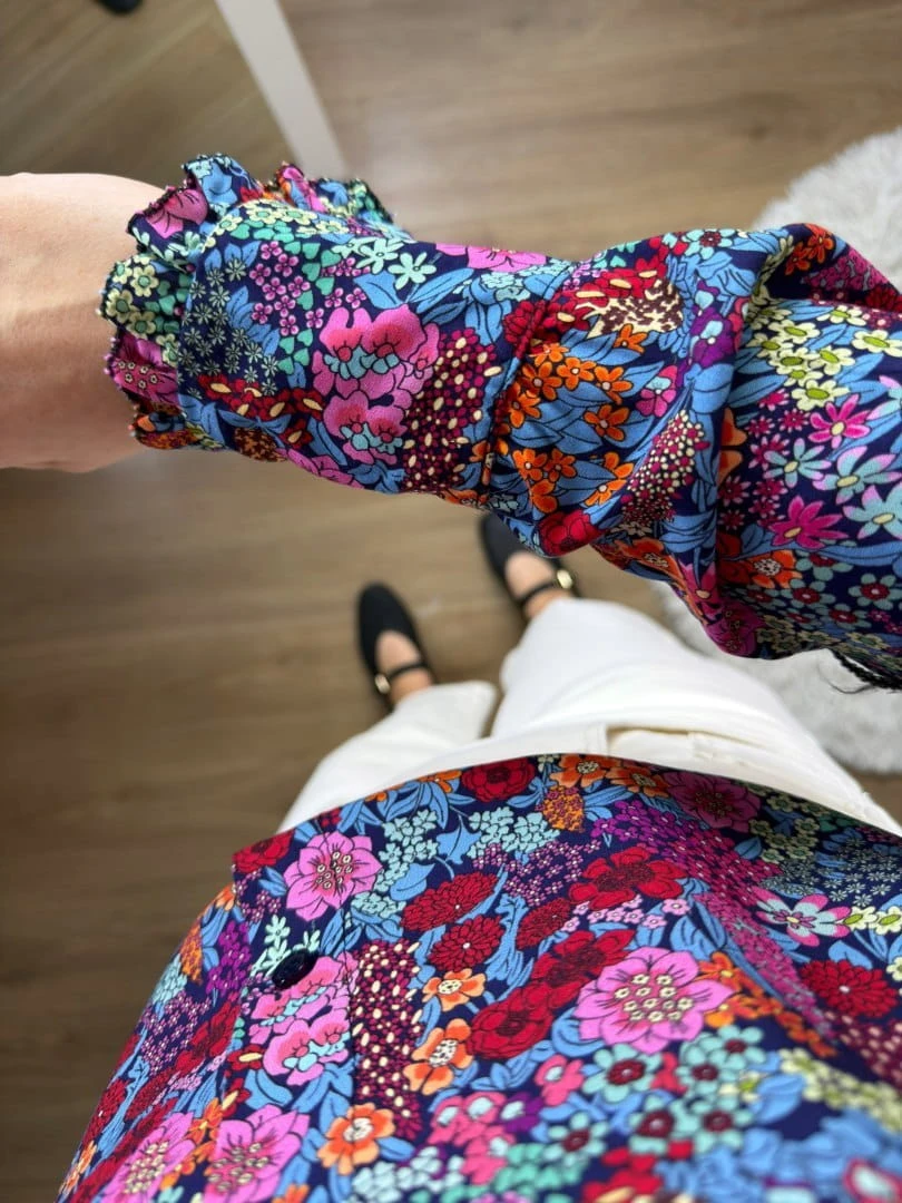 Zachwycająca koszula w intensywny, kwiatowy print, która od razu przyciąga spojrzenia.