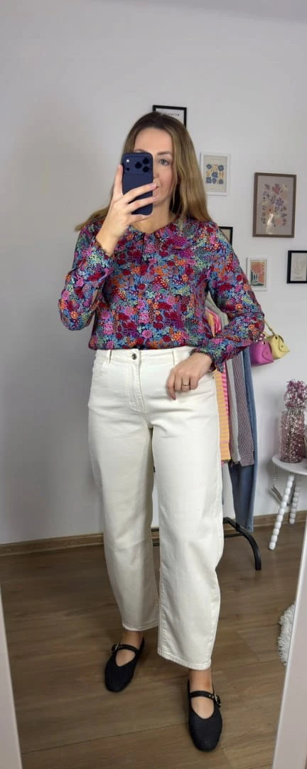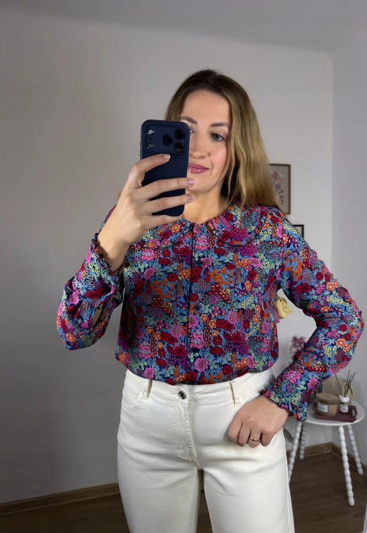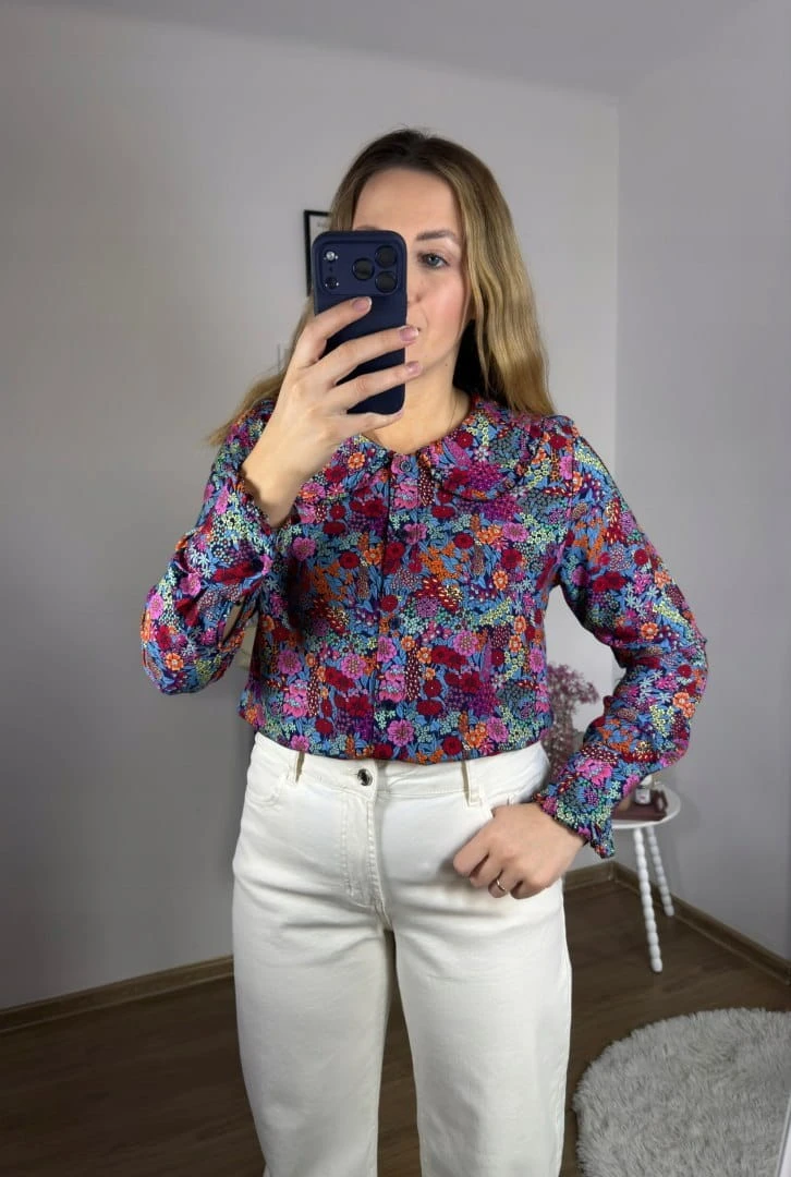 Koszula z kołnierzykiem w kwiaty 100% wiskoza wielokolorowa New Collection- FLORELLA