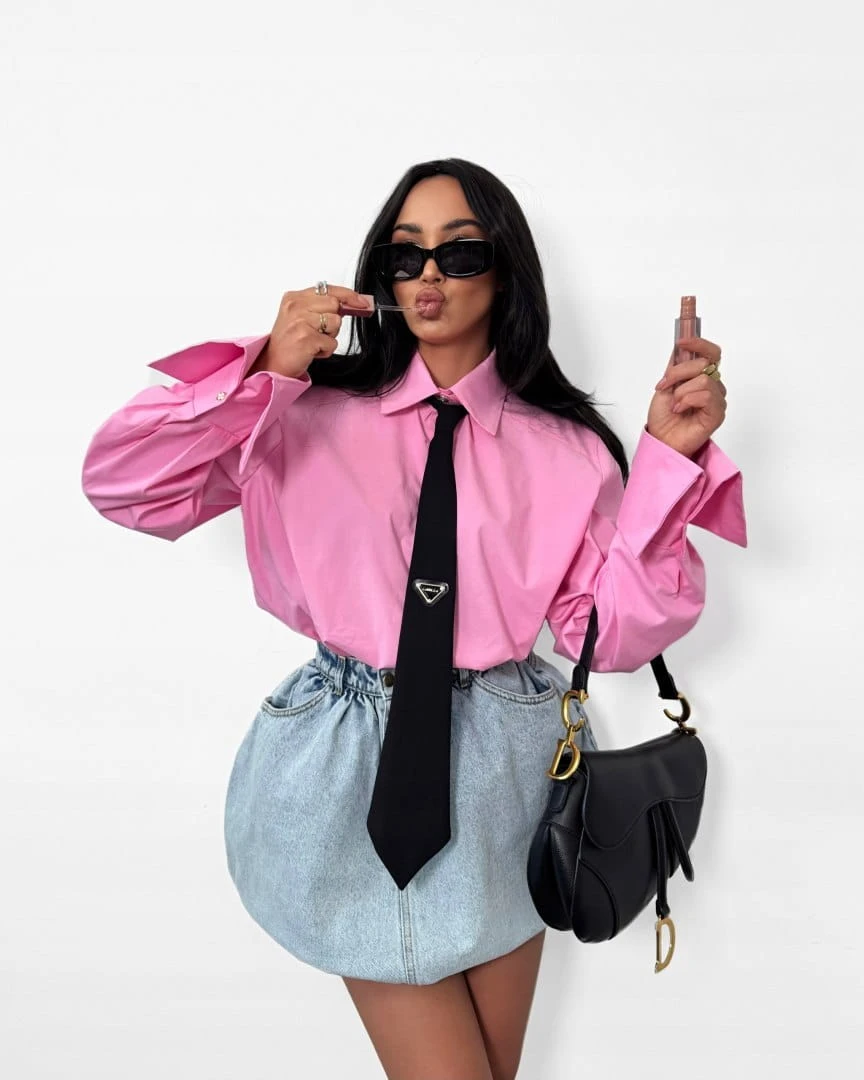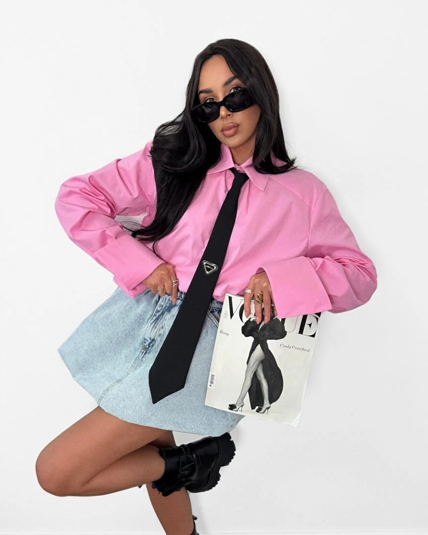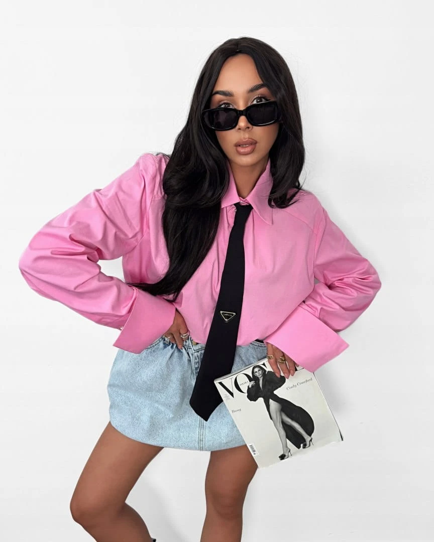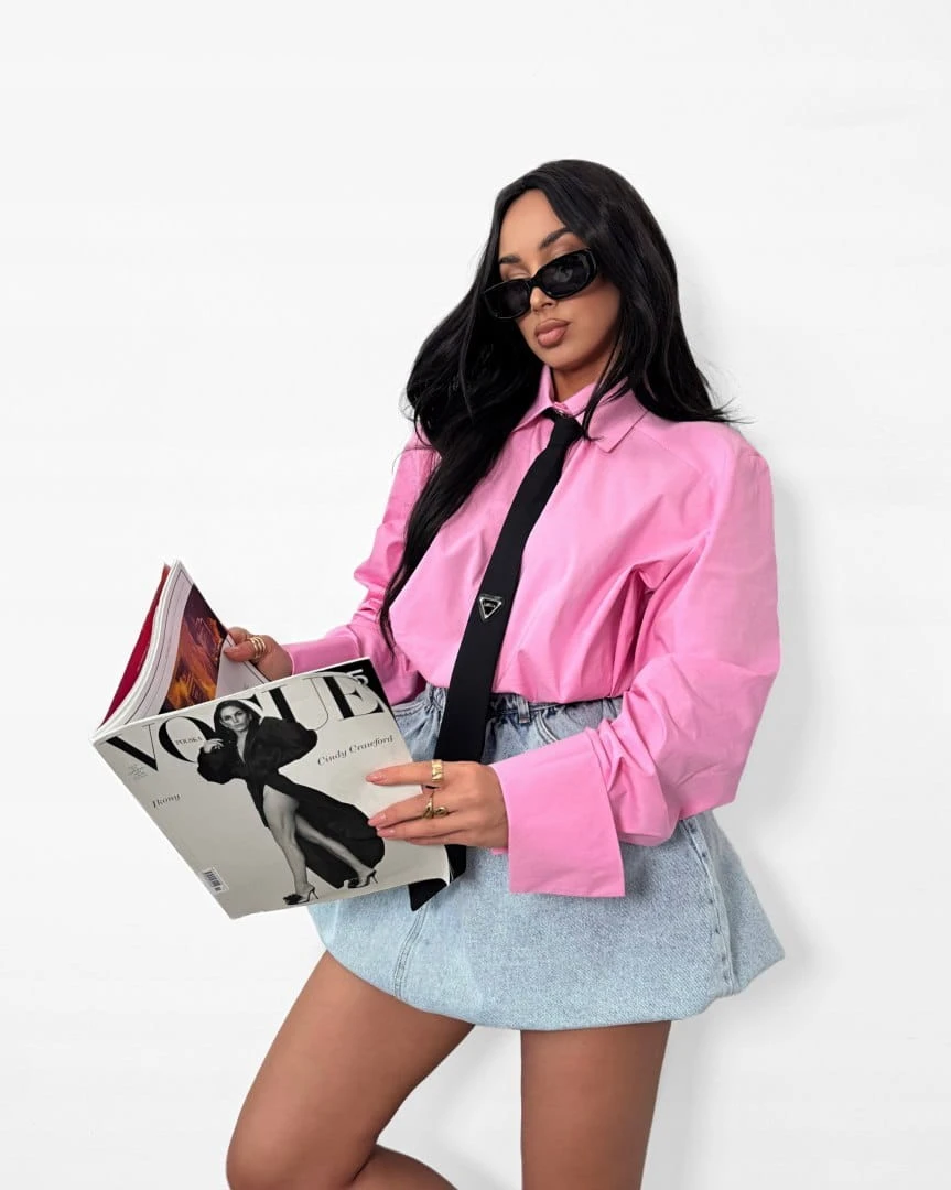 Koszula z krawatem oversize różowa czarny krawat bawełniana La Milla