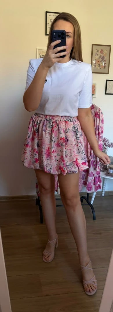 Lekka i kobieca spódniczka o modnym balonowym kroju, który pięknie układa się na sylwetce i dodaje stylizacji lekkości. Delikatny kwiatowy print sprawia, że model świetnie sprawdzi się zarówno na co dzień, jak i w bardziej eleganckich stylizacjach.