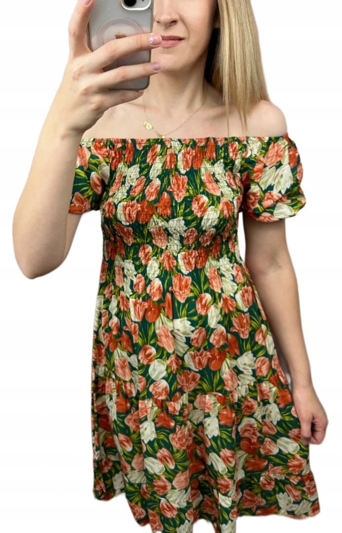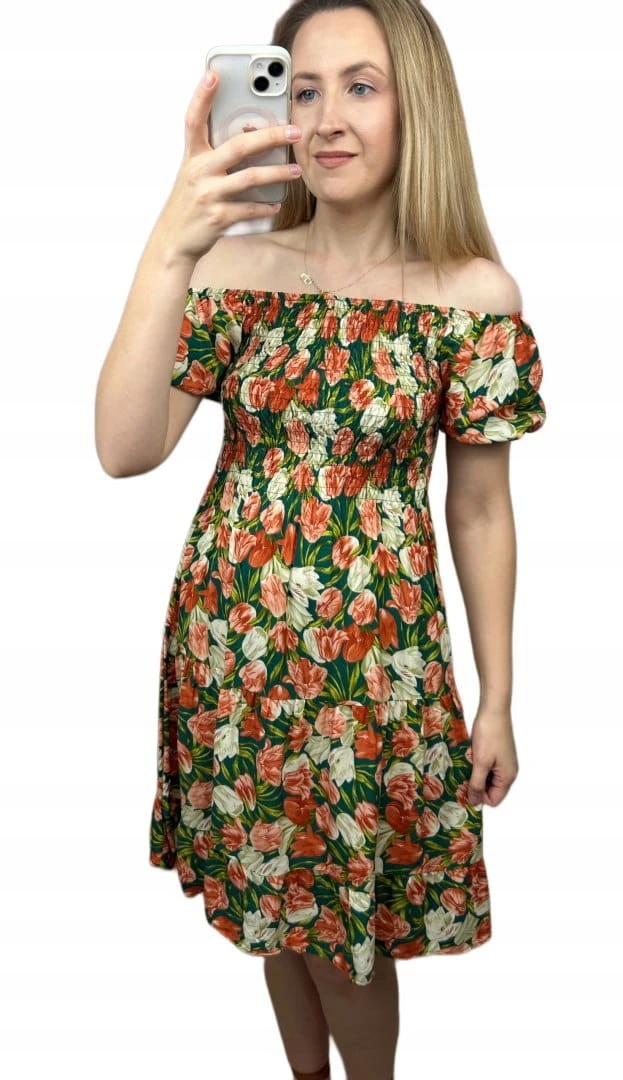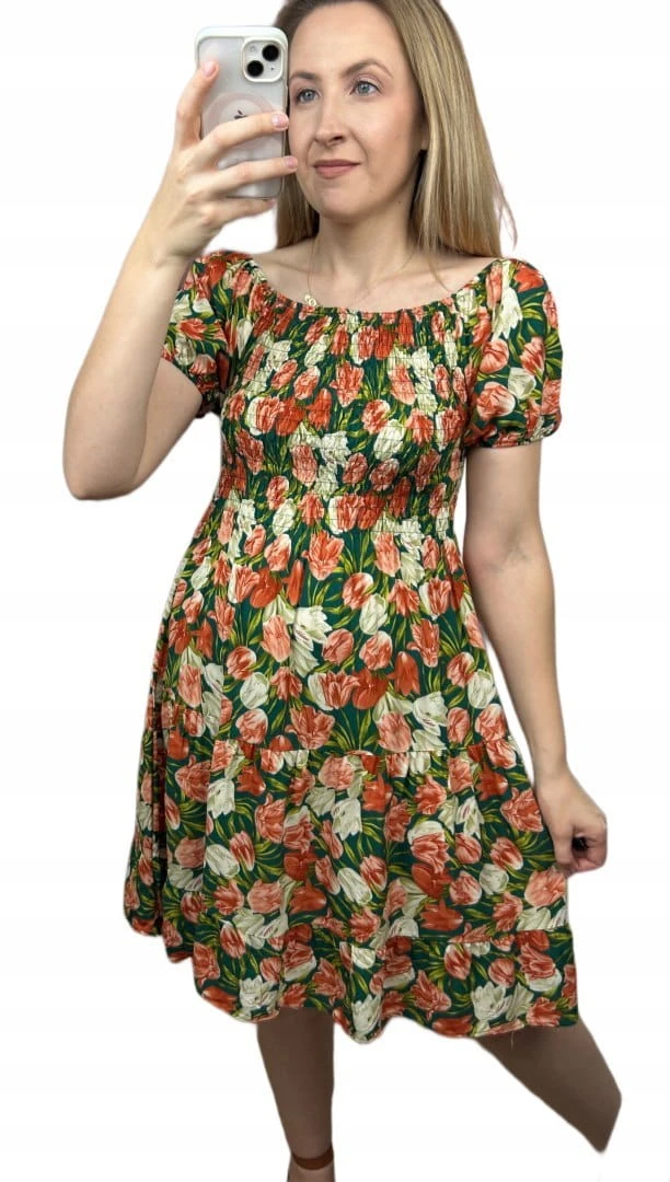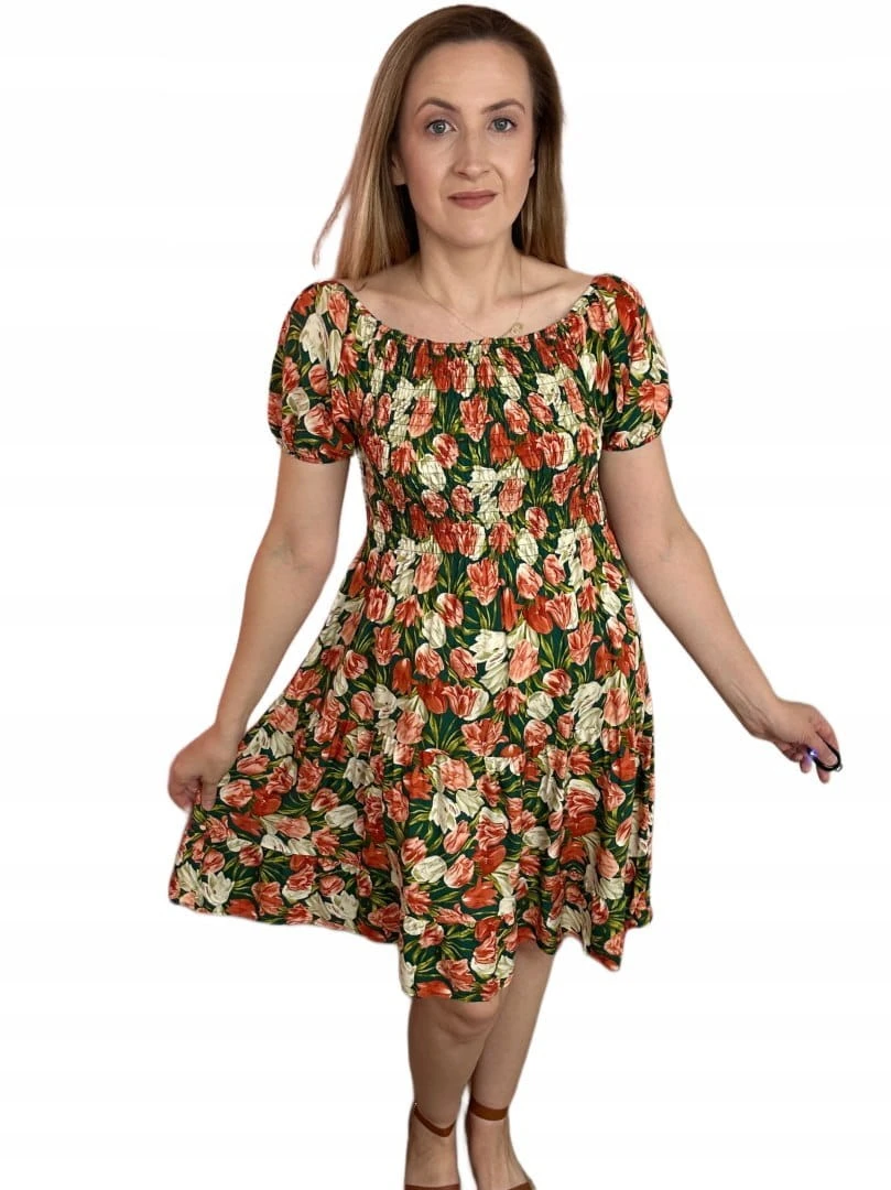 Krótka sukienka hiszpanka kwiaty luźna falbanka kwiatki bawełna wiskoza M/L