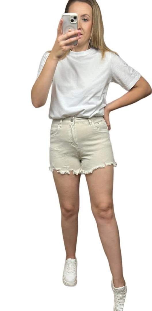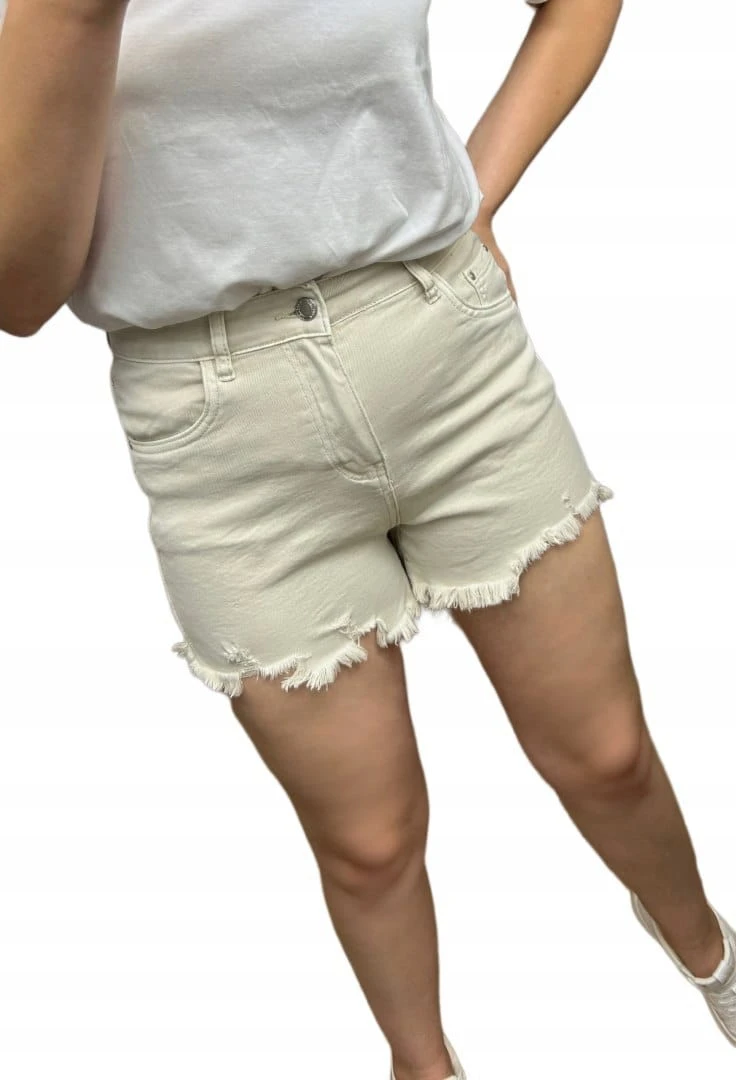Krótkie spodenki damskie szorty przetarcia dziury beżowe M. Sara XS