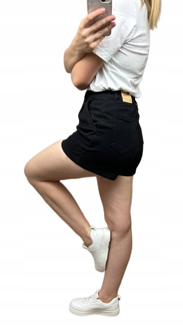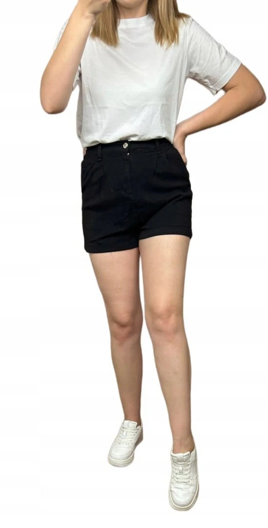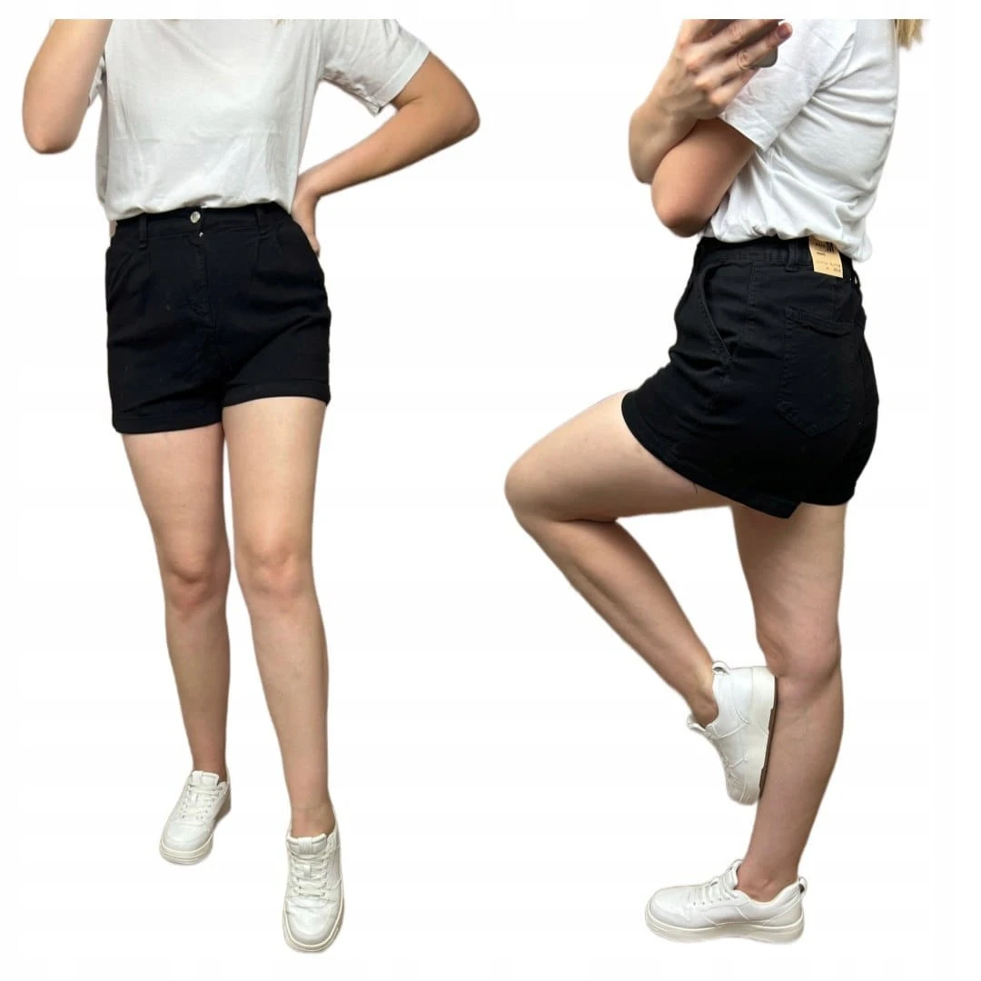 Krótkie spodenki szorty jeansowe czarne wysoki stan bawełna M.Sara XS
