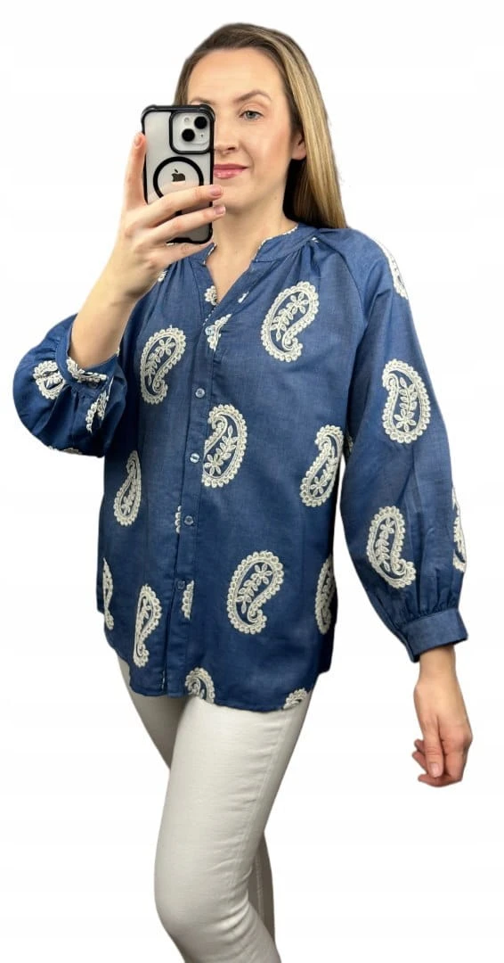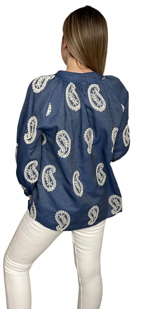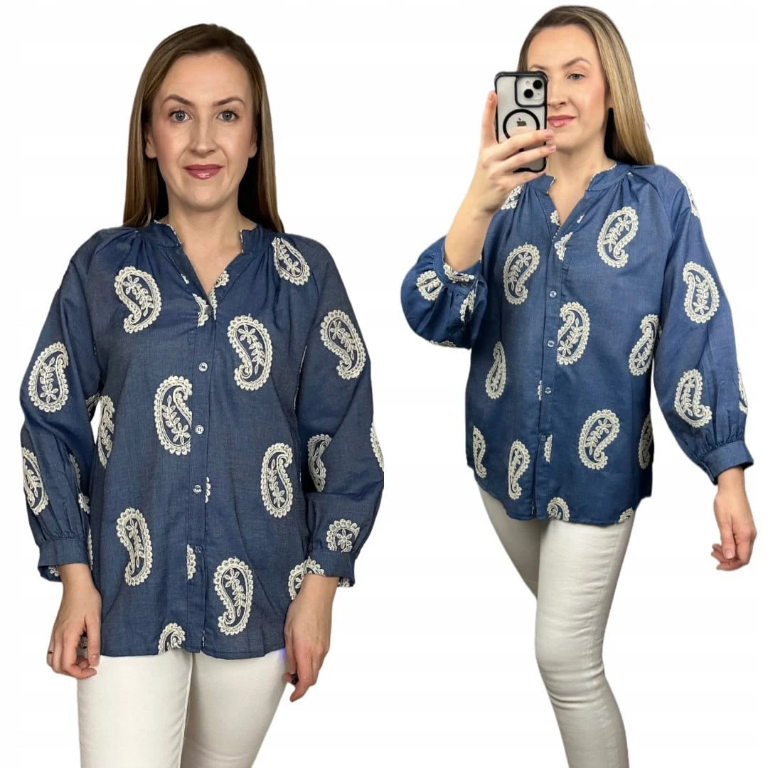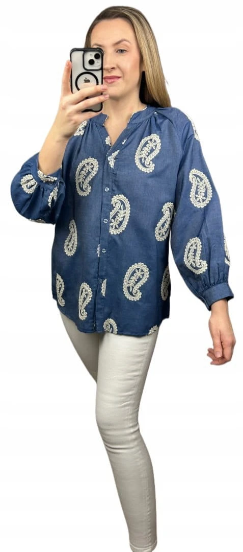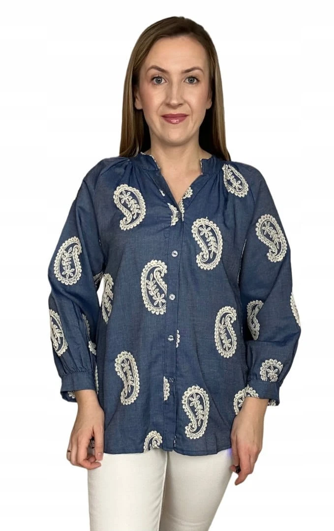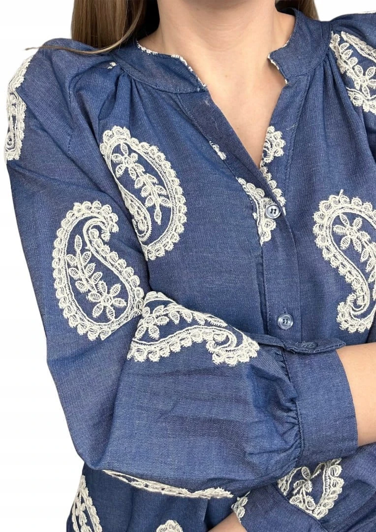 Luźna koszula ażurowa wzorzysta ze stójką szersze rękawy Made in Italy