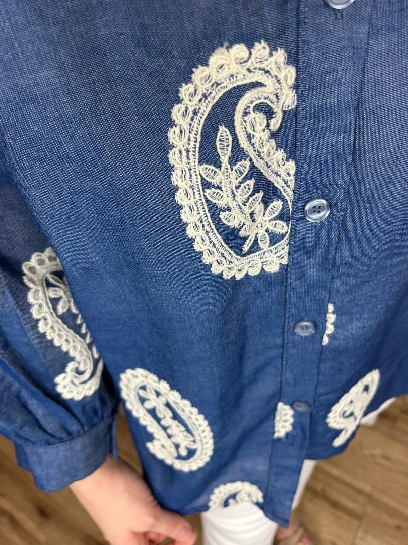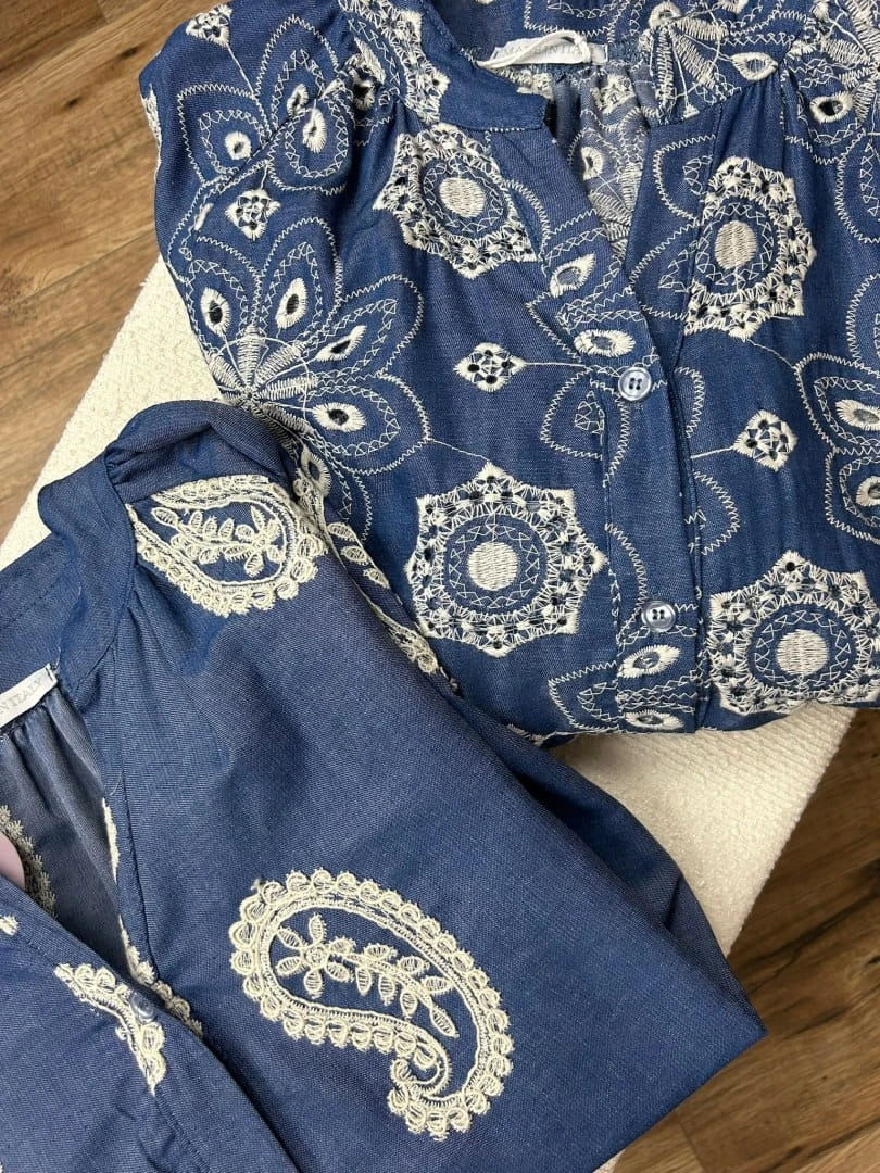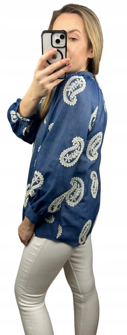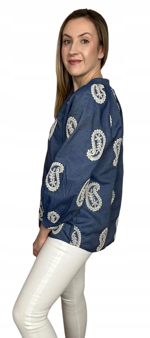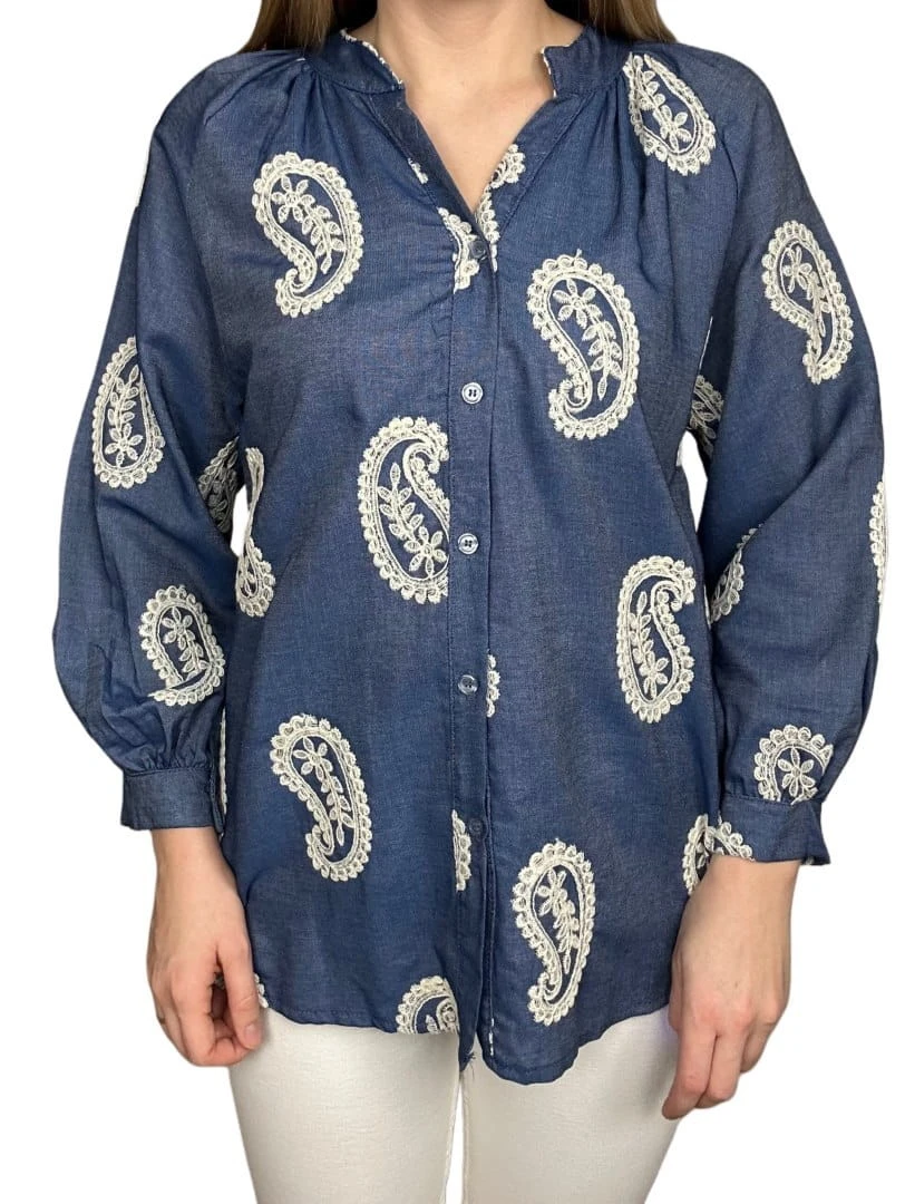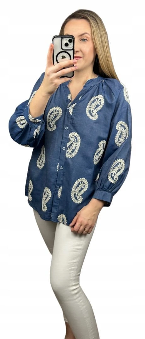 Luźna koszula ażurowa wzorzysta ze stójką szersze rękawy Made in Italy
