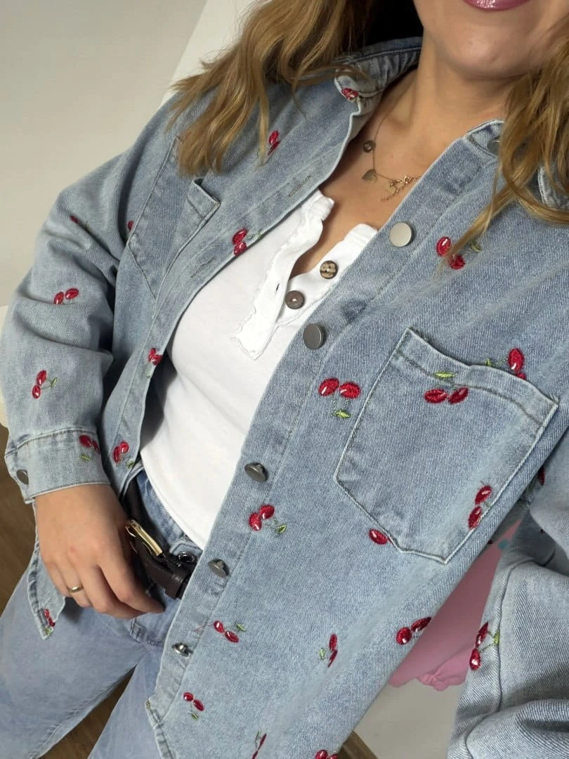 Koszula jeansowa z haftem wiśnie