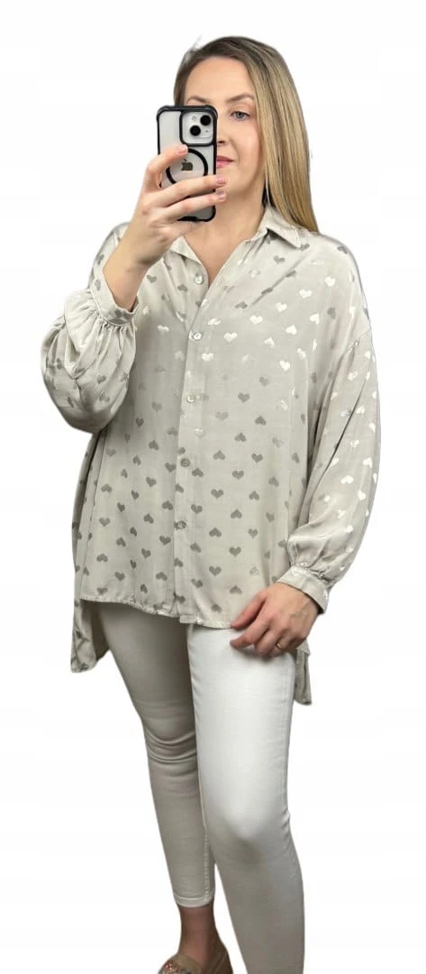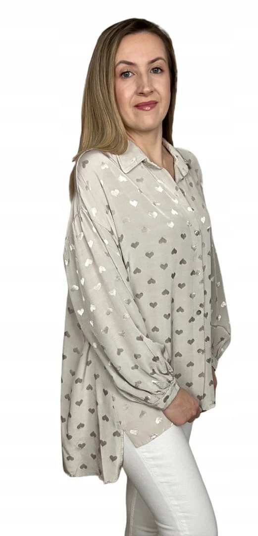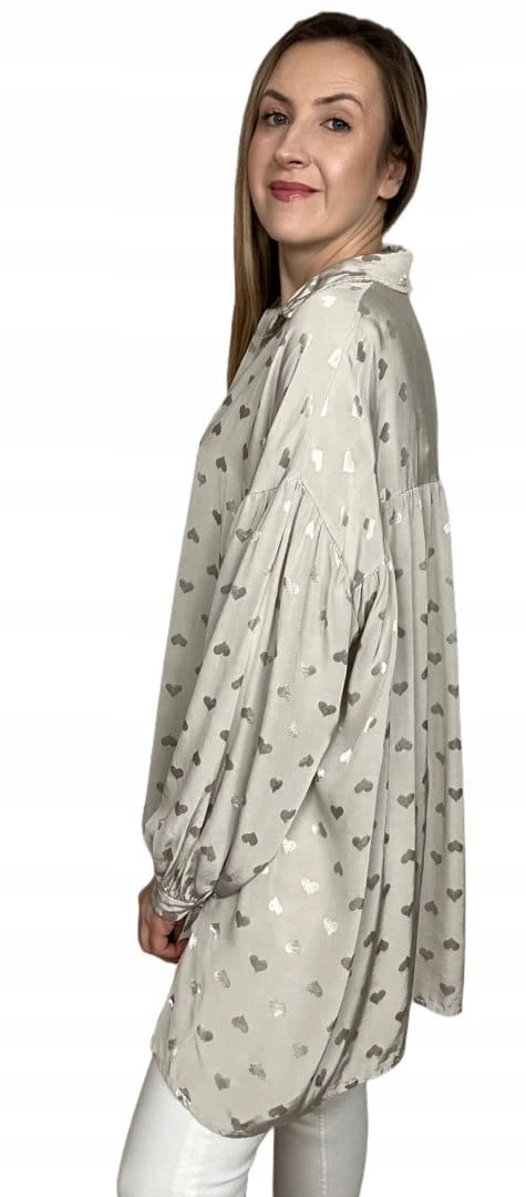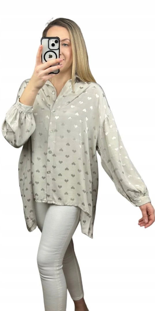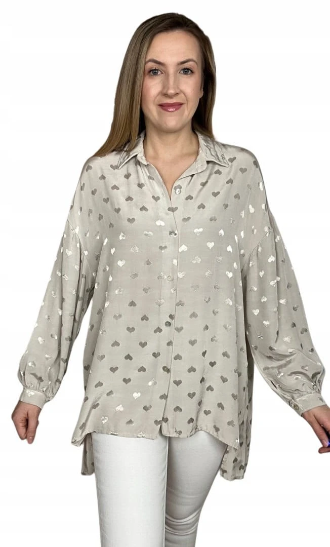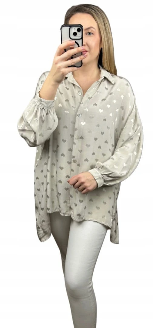 Luźna oversize koszula jedwabna jedwab serca serduszka dłuższa asymetryczna