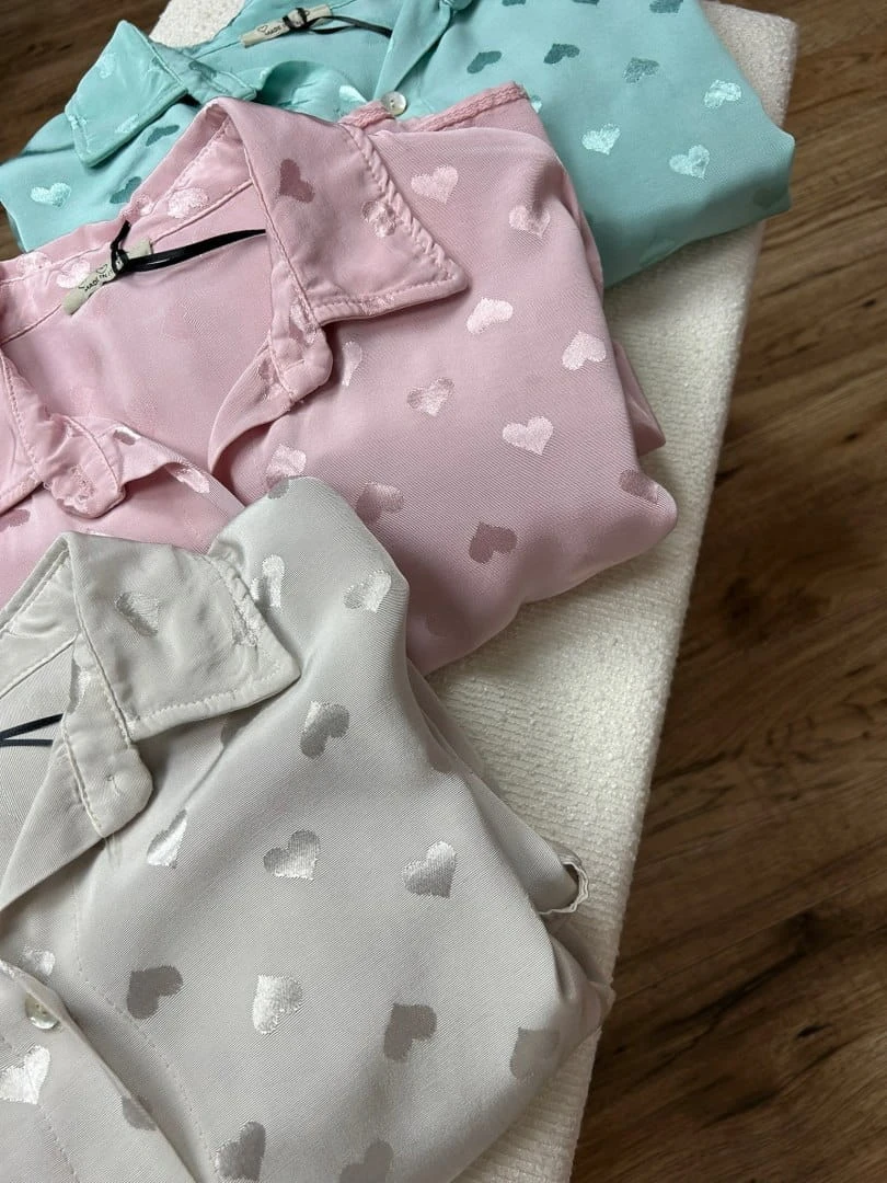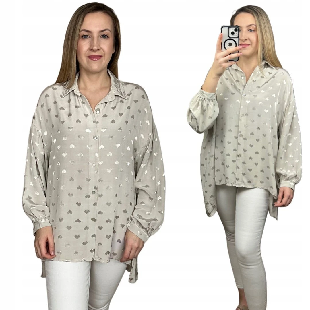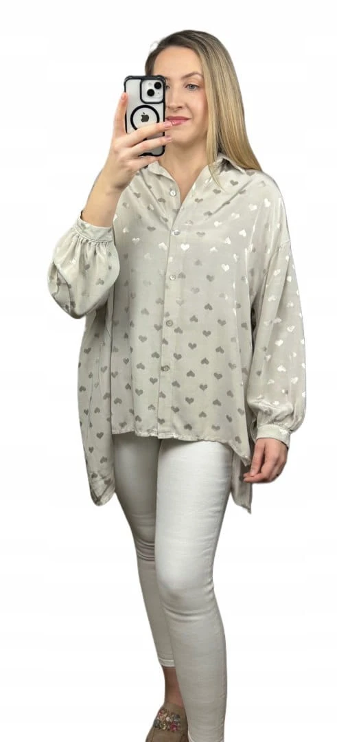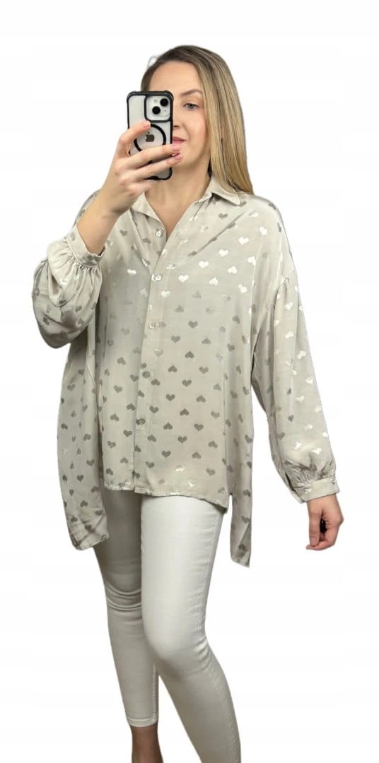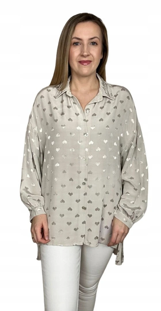 Luźna oversize koszula jedwabna jedwab serca serduszka dłuższa asymetryczna