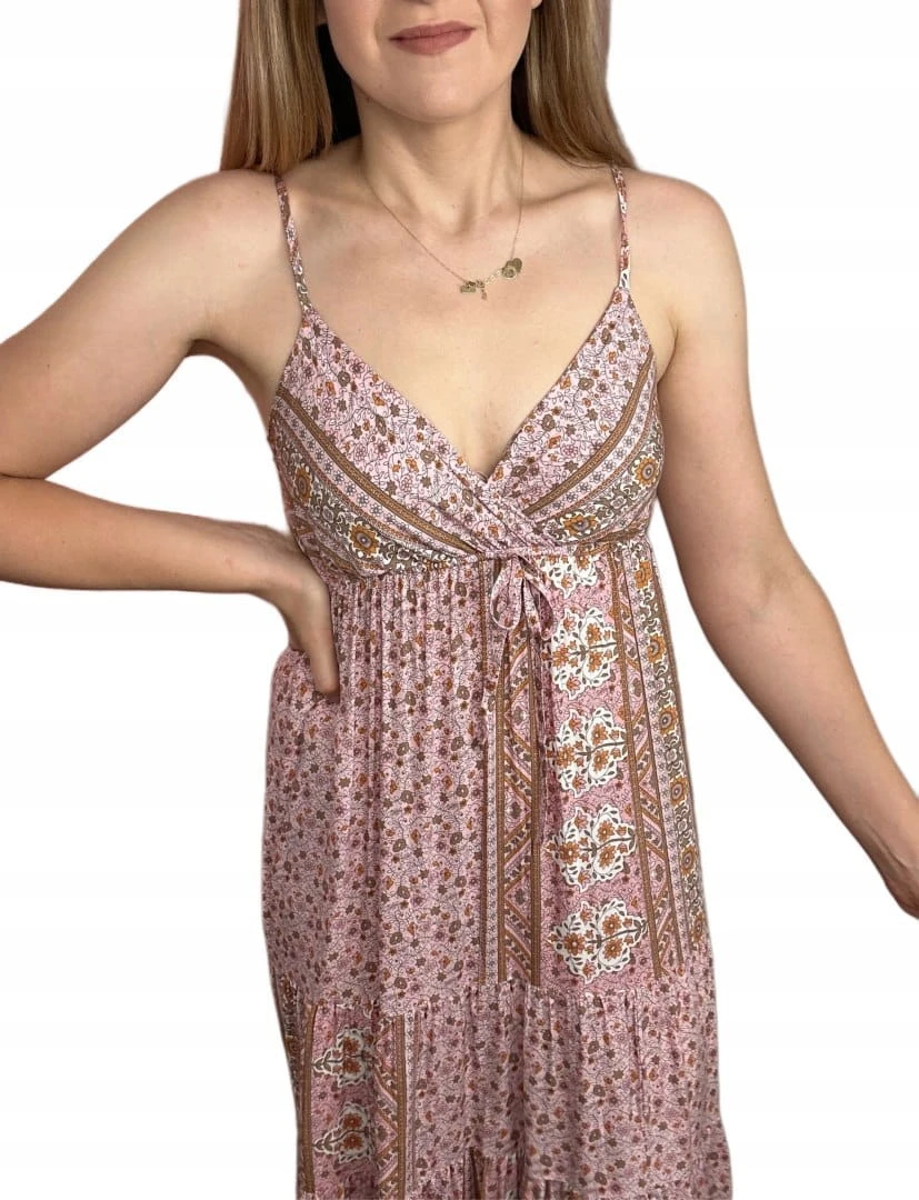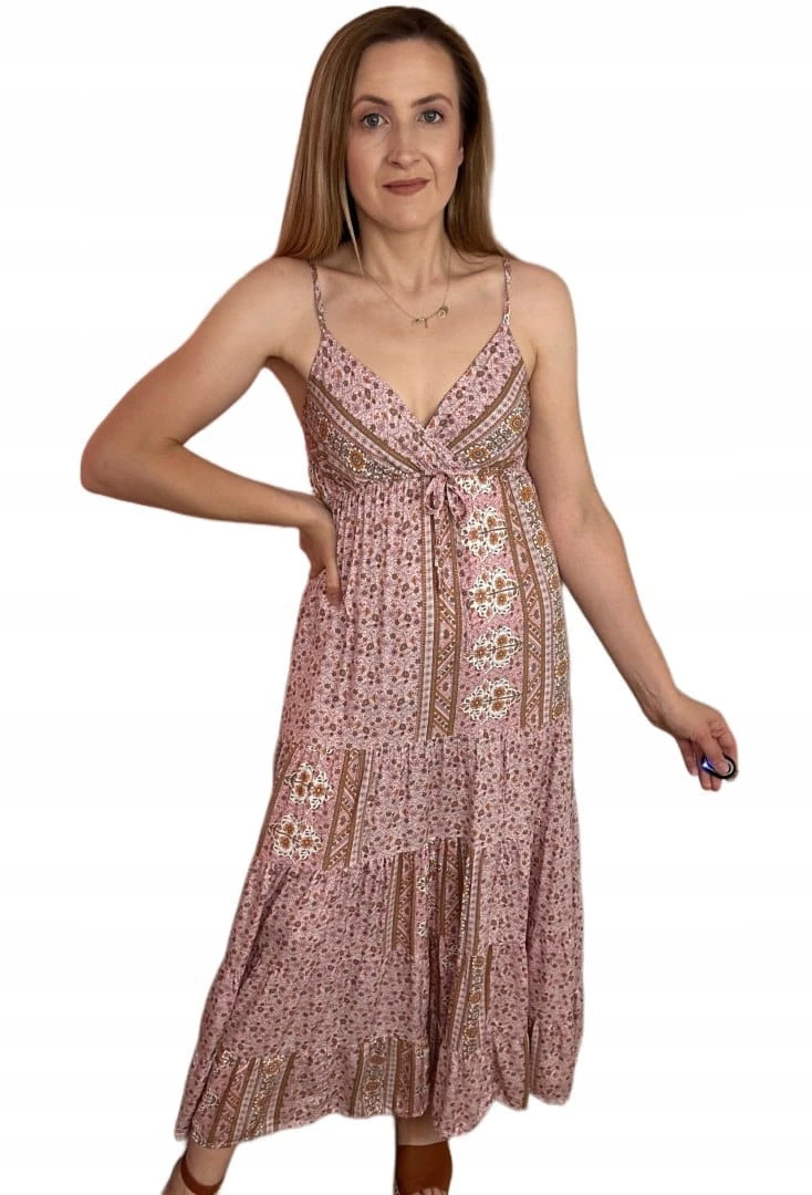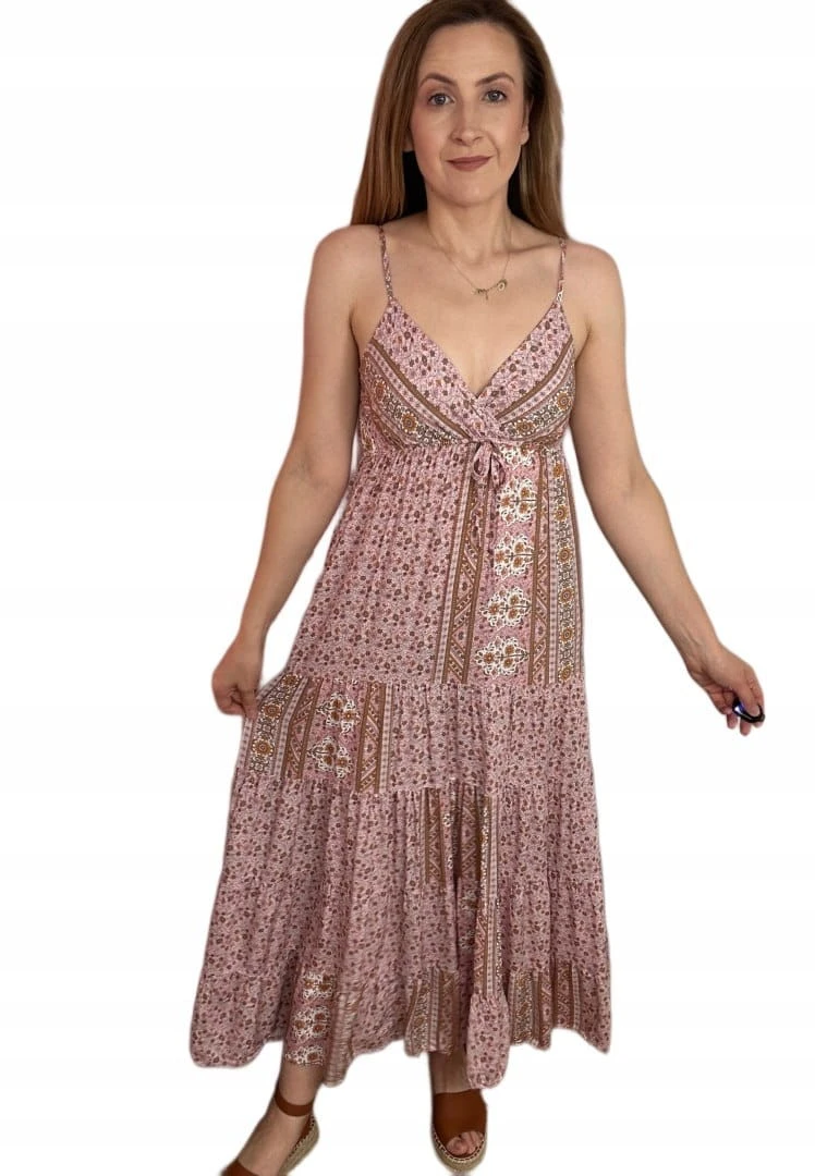 Luźna sukienka maxi długa na ramiączkach boho kwiaty lato zakładka XL/XXL
